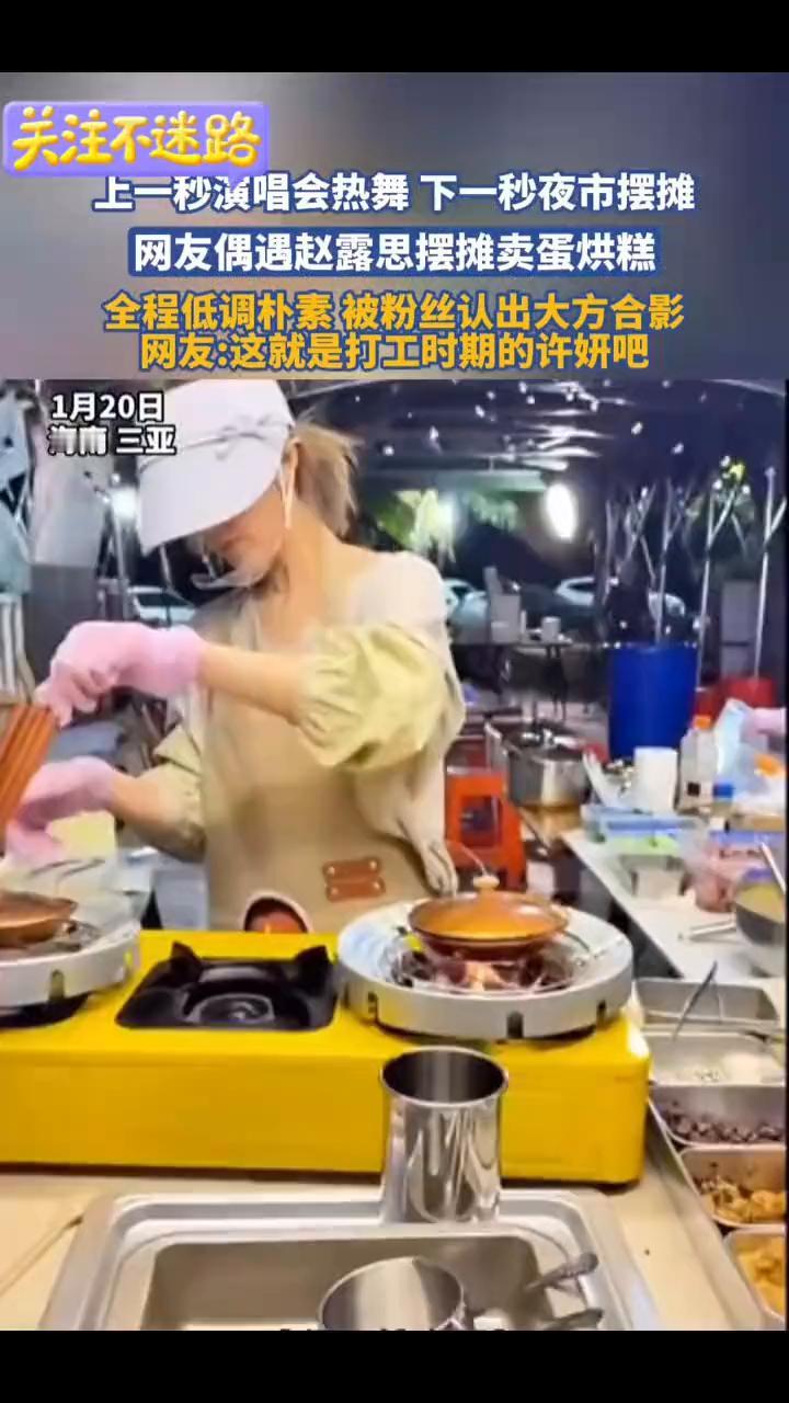 上一秒演唱会热舞,下一秒夜市摆摊。网友偶遇赵露思摆摊卖蛋烘糕,全程低调朴素,被粉