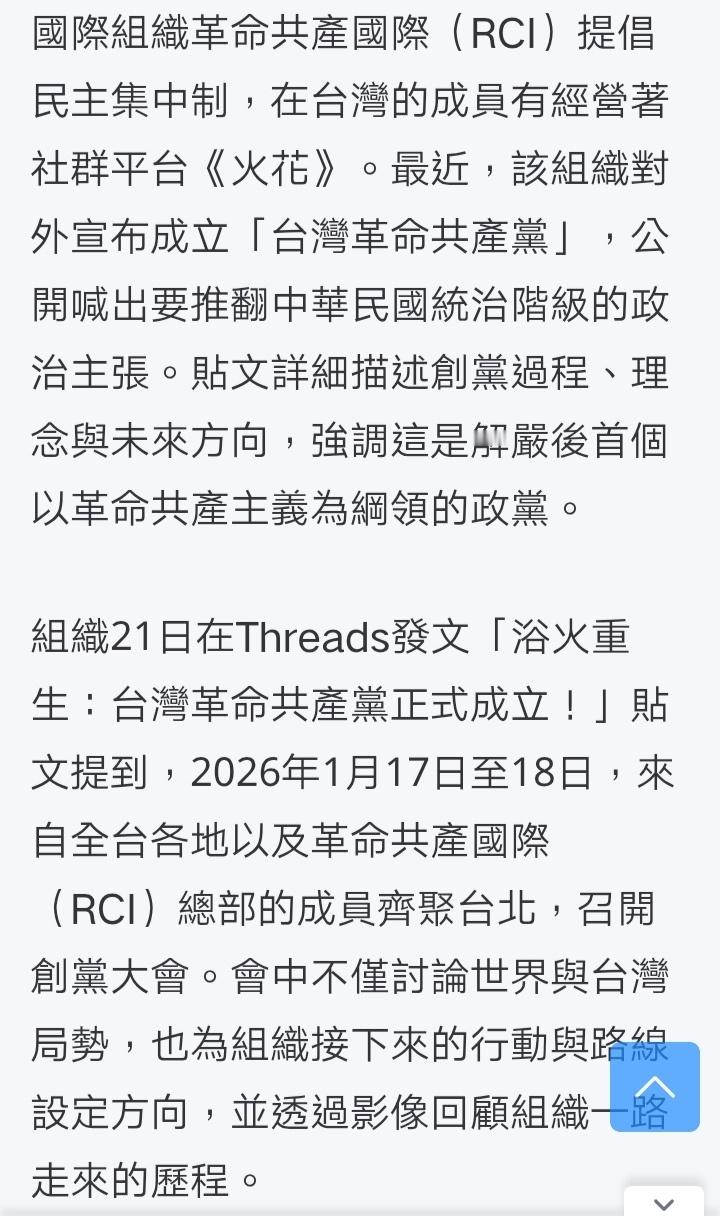 台媒:台湾革命共产党宣布成立