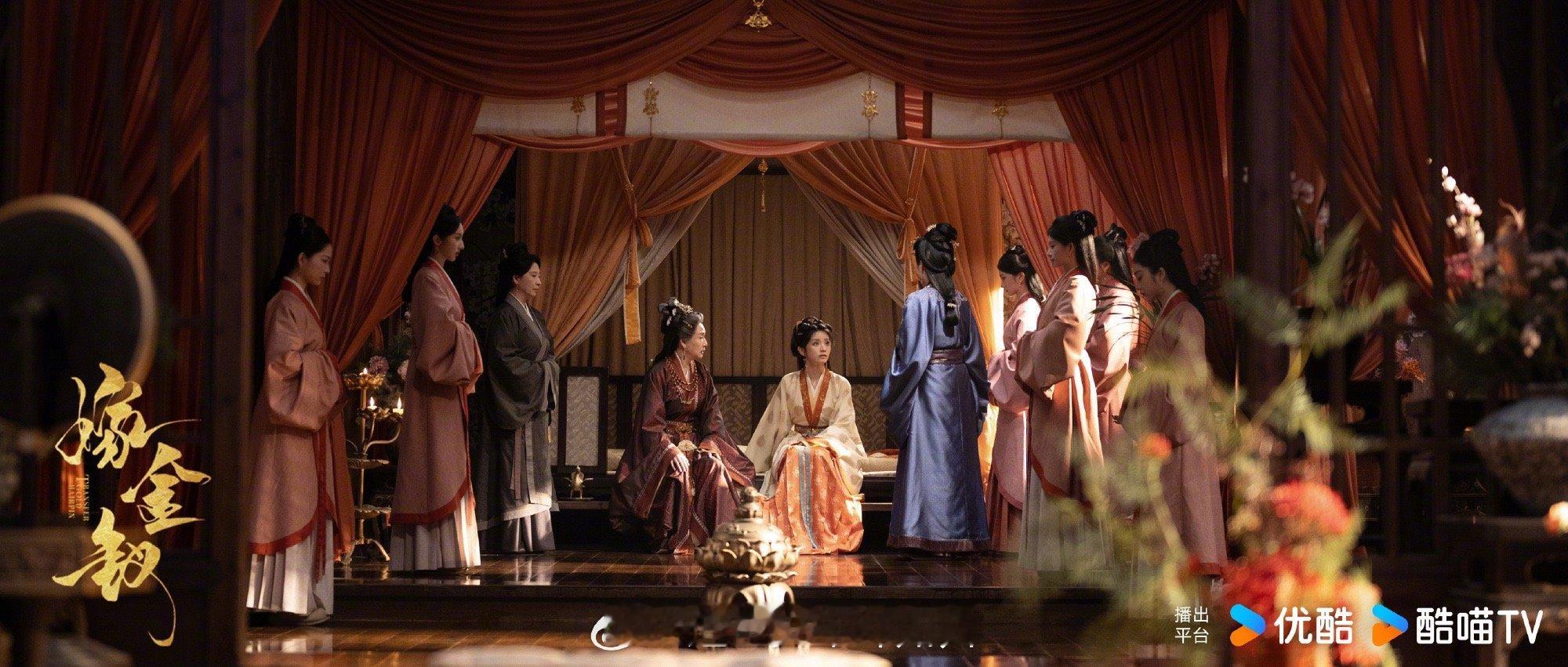 嫁金钗群像站位美学 群像站位居然能如此富有韵律感!人物高低错落如音符起伏,田曦薇和闫桉的对视成为视觉焦点,其他人物的姿态各异却和谐统一,这美术设计太高级了。
