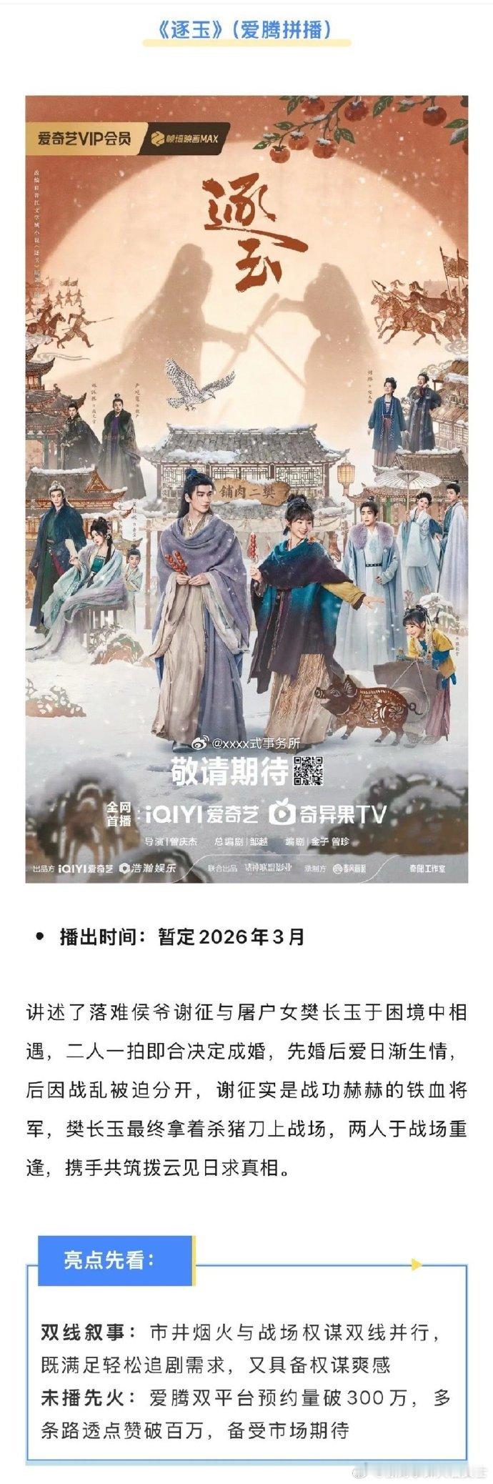 逐玉暂定0306张凌赫田曦薇逐玉暂定0306坐等0306!田曦薇张凌赫《逐玉