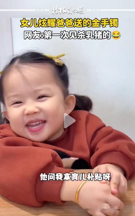 笑不活了!妈妈见女儿手上戴着金手镯,就问是谁给你买的呀,女儿回答是爸爸用育儿补贴