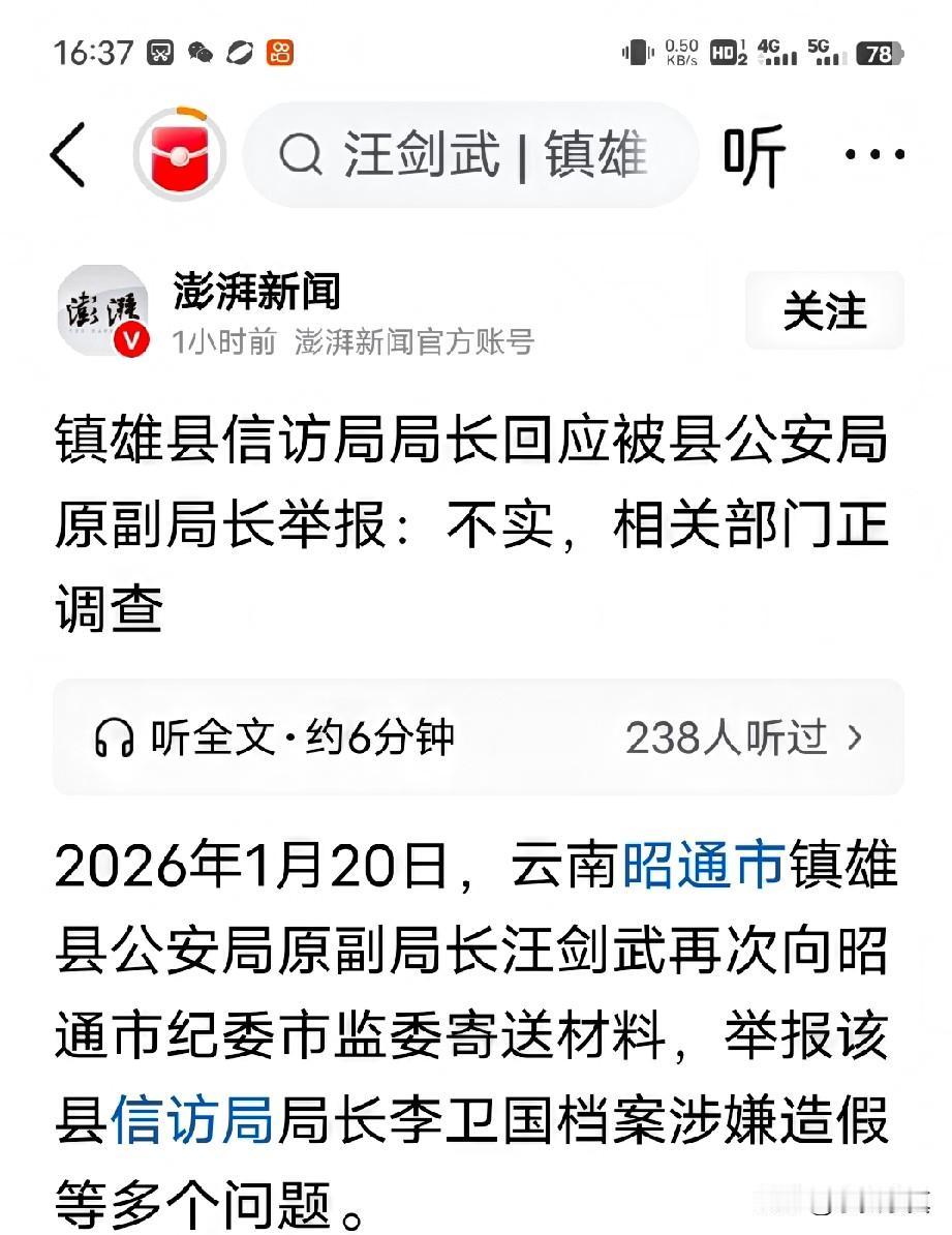 实名举报入党资料造假,原公安局副局长举报信访局长, 今年开年最大的笑话,云南昭通市镇雄县公安局原副局长汪剑武向昭通市纪委市监委,举报信访局局长档案涉嫌造假等问题。 把人逼的没办法了,一个前公安副局级干部敢实名举报,说明真是豁出去了,只能说苍蝇不叮无缝的蛋。司法部门介入调查了希望这事最后谁都不干净?