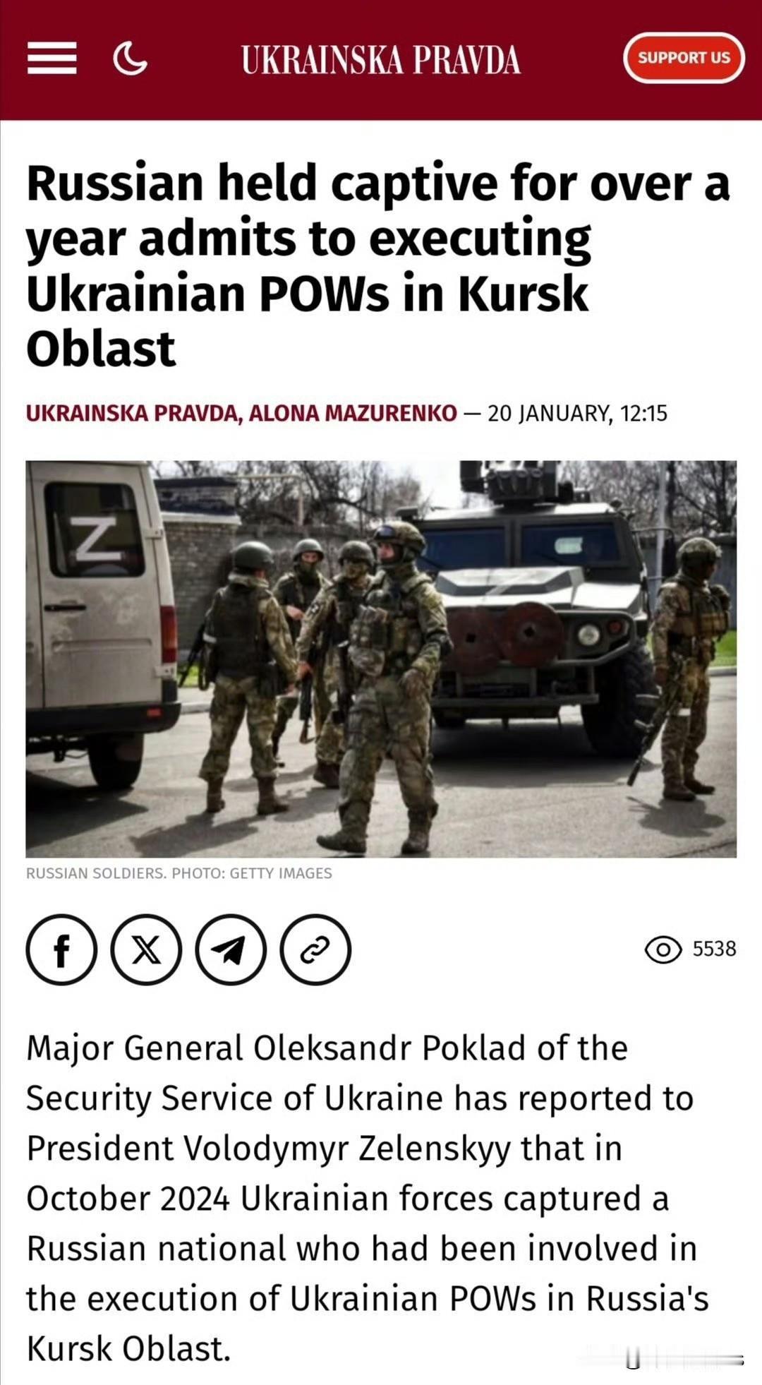 俄罗斯战犯:他被指去年在库尔斯克枪杀六名乌克兰战俘,如今他将面临乌克兰人民的审判…. 据乌媒报道,该俄兵名为Sergei Skobelev,曾有抢劫珠宝店的前科,后在第22摩步团服役,该团库尔斯克战役期间隶属第155海军陆战旅。2024年10月10日,在库尔斯克州Zelyony Shlyakh村,Skobelev所在的突击队俘虏了9名乌军,随后将其处决,其中Skobelev射杀了4人。2024年10月17日,Skobelev被俘,但直到近日才承认了上述行为。 此外,上周乌方还判处一位名为Sergei Tuzhilov的俄兵终身监禁。据报道,Tuzhilov来自第69摩步师,曾坐过两次牢。2024年6月,在沃夫昌斯克骨料厂Tuzhilov参与处决了3名乌军战俘。 俄乌战争