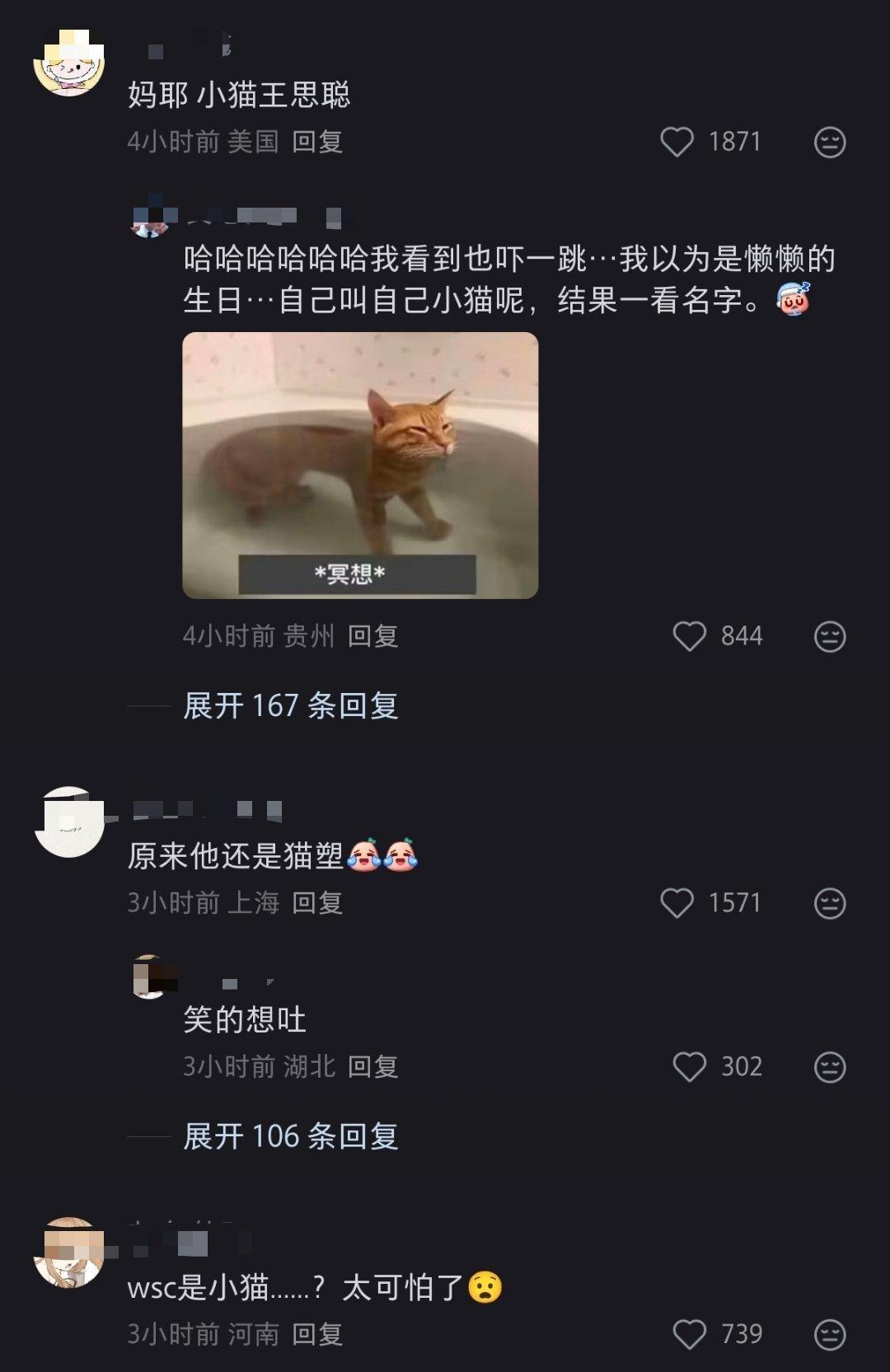 懒懒为男友王思聪庆生,她对王思聪的爱称是“小猫”。网友受不了了,喊38岁的老男人“小猫”?!笑到想吐。