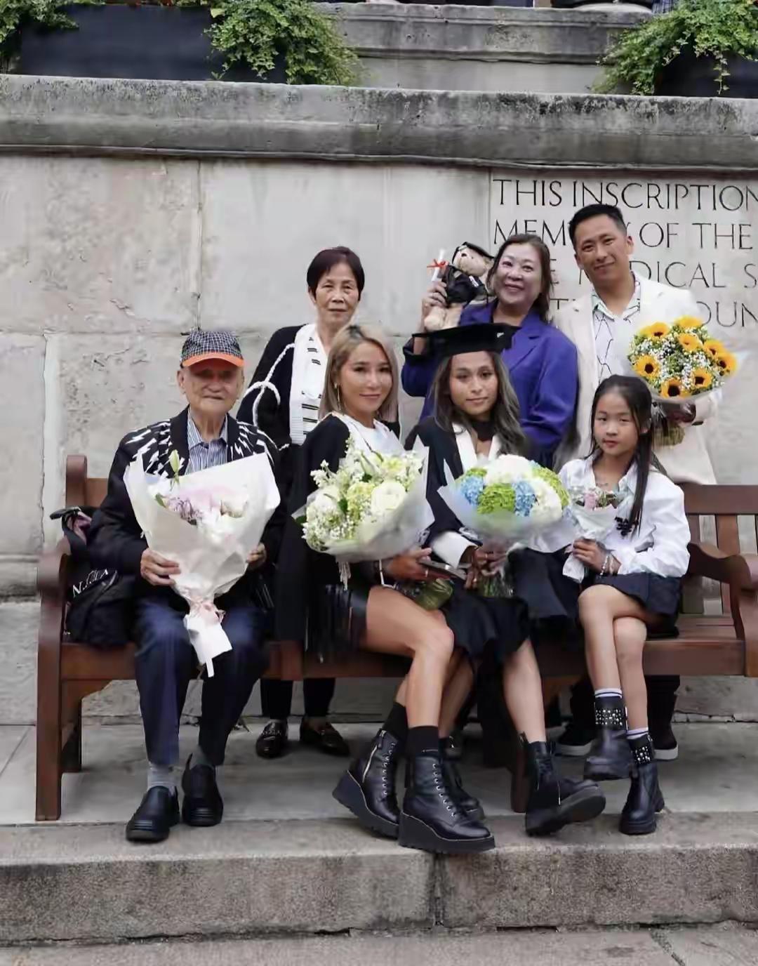 洗米华24岁女儿周梓潼在英国完成深造毕业,洗米嫂携继子周柏豪赴英参加毕业典礼。典礼当日天气放晴,洗米嫂难掩喜悦。周梓潼身着毕业袍与母亲亲密合影,母女相貌相似宛如姐妹。继兄周柏豪全程陪伴,兄妹感情深厚。这已是周柏豪第二次参加妹妹的毕业礼,此前2024年本科毕业时全家曾集体出席。 如今洗米嫂将重心放在两个女儿身上,大女儿学业有成且恋情稳定,小女儿尚在求学阶段。虽丈夫身陷囹圄,但洗米嫂积极面对生活,不仅维持家庭富足,还发展个人事业。在继子孝顺支持下,她依然是家中的顶梁柱,生活充实美满。