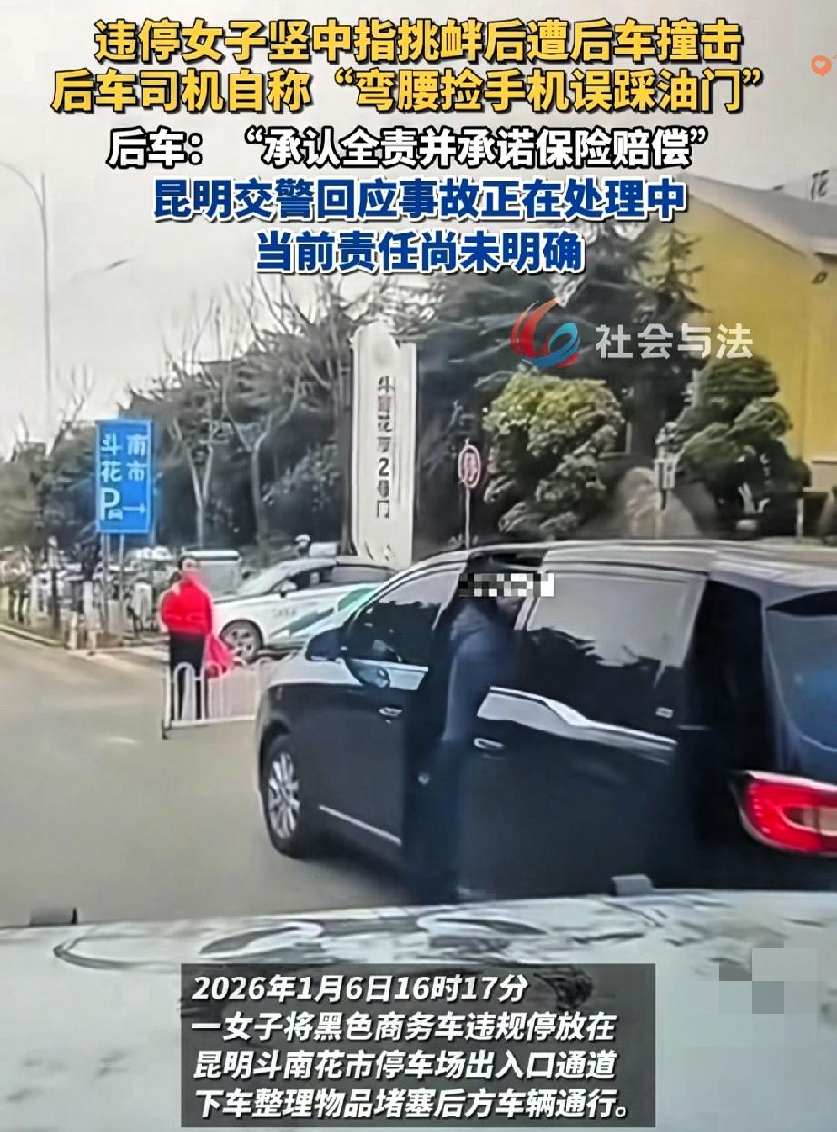 女子违停竖中指被撞社死! 司机霸气发声,警方出手,这下麻烦大了! 真的别拿嚣张当个性,这位违停还竖中指挑衅的女子,不仅当场被撞摔了跤,全网围观的社死场面更是自作自受! 可这事的结局,却给所有人都上了一课。 女子堵路在先,被提醒还摆嚣张手势,任谁看了都窝火,可司机一时失控的撞击,哪怕是误踩油门,也得担下主要责任,警方的判定,狠狠戳破了“以暴制暴解气”的幻想。 嚣张的行为该被谴责,但冲动的反击从不是解药,法律只看事实不看情绪,再大的火气,也不能用方向盘泄愤。 女子丢了脸面,司机赔了钱财,这场闹剧里没有赢家,只印证了遇事沉不住气,终究要为自己的行为买单。 真正的霸气从不是硬碰硬,而是用规则保护自己,用理智化解矛盾,逞一时之快的结果,往往是得不偿失。 如果你遇到这种违停又挑衅的情况,会选择冷静取证还是当场理论?评论区说说你的做法吧~