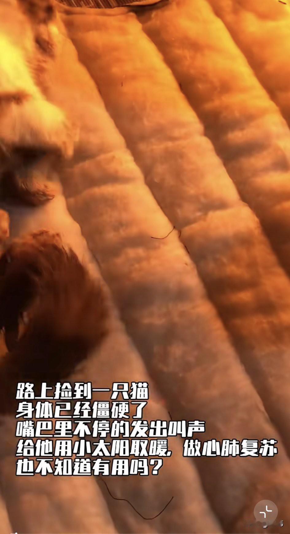 泪目了!这天夜里,一位小哥哥下班回家,当他走到一条小路上的时候,听到路边有小猫虚弱的叫声,他便开始寻找小猫,结果看到一只全身僵硬不能动的小猫,在那里哀嚎,善良的他顿时心生怜悯之心,于是决定救助它。 他把小猫送去了宠物医院,可医生却说它病的很严重,已经无法治疗,他只好把小猫带回去自己家里给它用小太阳取暖,然后给它不停地做心肺复苏,希望能救活它,估计是小哥哥的爱心感动了上天,最终在他不懈的努力下,小猫真的醒了过来,他开始给它喂吃的,小猫也能吃一些,可依旧很虚弱,站都站不稳。 于是小哥哥就让它躺在窝里休息,可悲剧还是发生了,第二天早上起来,小哥哥发现小猫还是失去了呼吸,永远的走了!最终他把小猫带去了附近公园安葬了。希望它能入土为安。