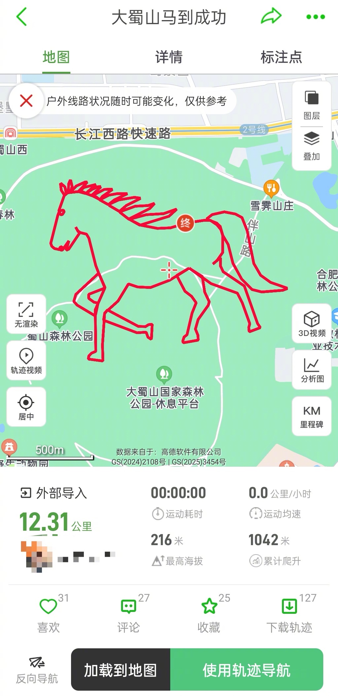 【#合肥大蜀山跑山画马路线藏风险#,公园管理中心提醒:游客勿进入未开发区】#合肥大蜀山跑山画马路线或藏有野猪# 马年临近,一种名为“跑山骏马图”的创意玩法在徒步与跑步爱好者中悄然兴起——参与者通过设计特定轨迹,沿该路线进行徒步或越野跑,并利用户外运动软件记录轨迹,最终在地图上形成一幅骏马图案。这一新颖的打卡方式,正成为不少跑友和户外爱好者表达新年祝福与期许的新选择。大皖新闻记者在某户外APP上看到,近期上传的大蜀山“画马”轨迹全程约12至18公里,耗时超过12小时,相关路径已被上百人下载使用。然而,这种兼具创意与健身意义的活动背后,也潜藏着一定的安全风险。记者在地图上注意到,“画马”路线大多经过大蜀山国家森林公园的非游览区域。评论区也有跑友提醒,部分路段坡陡路滑、杂草灌木丛生,甚至需要自行开路,存在安全隐患。1月22日下午,大皖新闻记者联系到合肥市蜀山森林公园管理中心。针对市民自发的“跑山画马”行为,管理中心工作人员明确表示,建议跑友在公园规划开放的路线和区域内进行健身活动,不推荐深入密林未开发区域。工作人员指出,“画马”路线中有相当一部分位于非游览区或未开发区域,不属于公园日常管理和维护范围,“这种行为可能会对参与者自身安全构成威胁。”工作人员进一步说明,这些区域常有蛇类、蜱虫、马蜂等野生动物出没,也曾监测到野猪等具有一定攻击性的动物活动。深入密林,遭遇野生动物的概率较大,人身安全难以保障。此外,野路等地形复杂,常有陡坡、坑洼、松土滑石,部分斜坡坡度较大,容易导致扭伤、摔伤等意外。这些地方标志不明、远离环山主路,手机信号也往往不稳定。一旦发生危险,救援人员和车辆很难快速抵达和准确定位。工作人员还补充道,“画马”打卡也可能对森林生态环境造成破坏,公园明令禁止攀折花木、采摘果实,“人为开辟路径和频繁踩踏会损伤地表植被与腐殖层,影响植物正常生长。人类活动的侵入也会干扰野生动物栖息,打破生态平衡。如发现此类行为,公园巡逻人员将进行劝阻。”最后,公园管理中心向广大市民呼吁:创意健身应以安全为前提,建议游客选择已修建好的步道活动,尽量避免进入未开发区域。“祝愿大家在马年能够安全健身、快乐健身。”(大皖新闻记者 孙召军 实习生 李玥然)合肥大蜀山公园提醒:“画马”路线藏风险 游客勿进入未开发区域