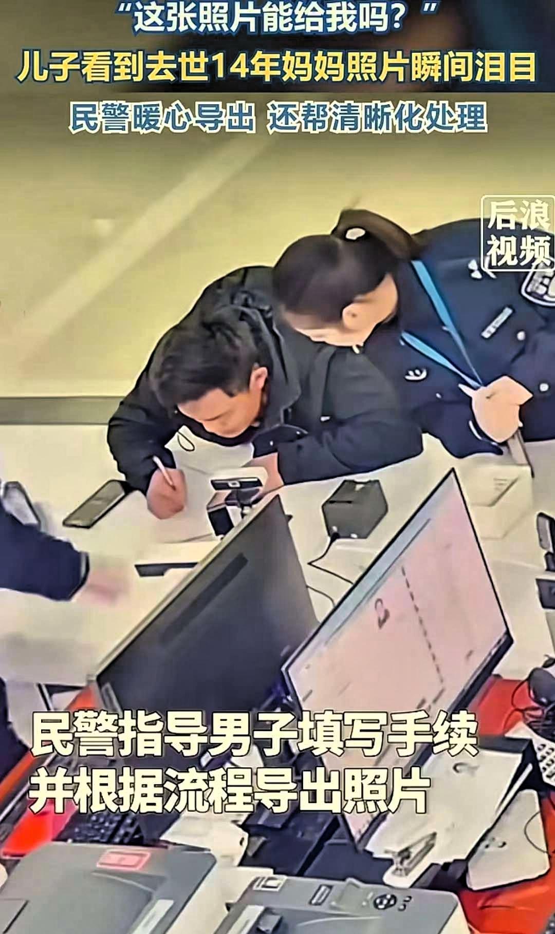 “看哭了!”安徽,一男生和父亲去户籍大厅办理变更,无意间看向操作屏幕,一眼看到了去世14年母亲的照片,瞬间红了眼眶。 母亲走后,家里留存的她的照片本就不多,猝不及防在户籍系统里看到熟悉的模样,惊讶之余,满心的思念也一下子涌了上来。 工作人员起初不解父子俩为何面色沉重,得知缘由后也心生动容。男生犹豫着哽咽提出,想把这张照片导出来带走,本以为会给工作人员添麻烦,没想到对方当即应允,让他按要求填写表格,全程耐心办理。 为了让照片看得更清晰,工作人员还特意做了清晰化处理,一切弄妥后,亲手把照片交到了男生手中。 接过照片的那一刻,男生再也忍不住红了眼,连声道谢。这份藏在政务系统里的14年记忆,还有工作人员的贴心举动,都让他倍感温暖。其实政务窗口从不是只有冰冷的规矩,更多的是守着规矩的同时,藏在细节里的体谅和善意。 工作人员做的不过是本职范围内的事,却因为多了一份细心和共情,守护了一份珍贵的亲情念想。生活里最动人的,从来都是这样的小温暖,没有轰轰烈烈,却能在不经意间治愈人心。 正是这些平凡岗位上的小小善意,让人与人之间的距离变得更近,也让日常的生活多了许多温柔的底色。为这位有温度的工作人员点赞,也愿这份温暖能被更多人看见,传递下去。