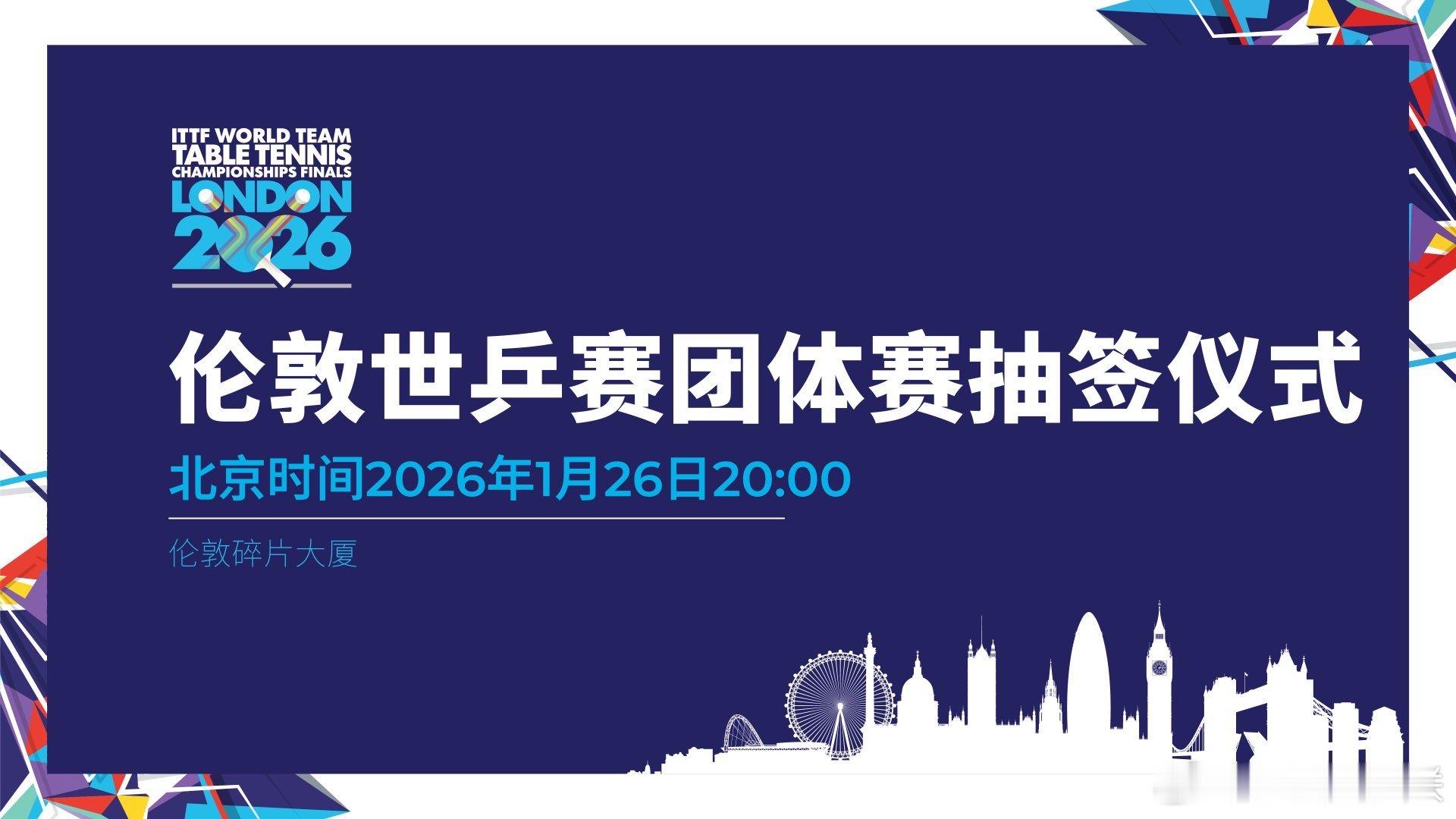 20250122|伦敦世乒赛团体抽签伦敦世乒赛团体赛抽签仪式将于1月26日晚上2