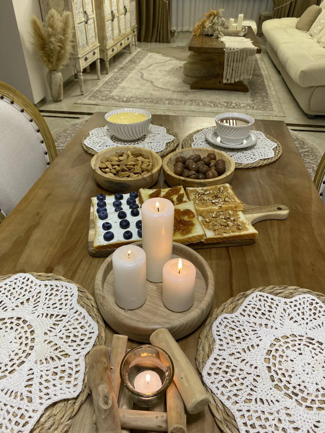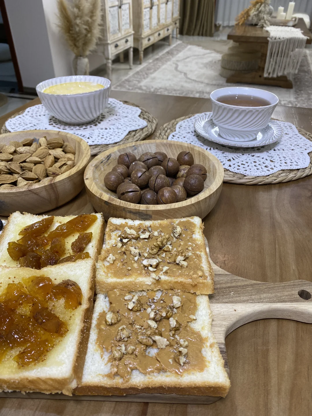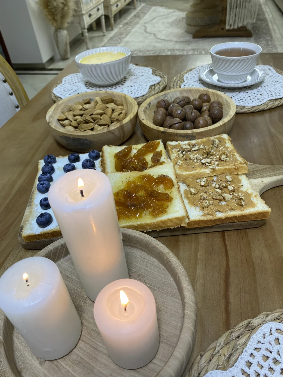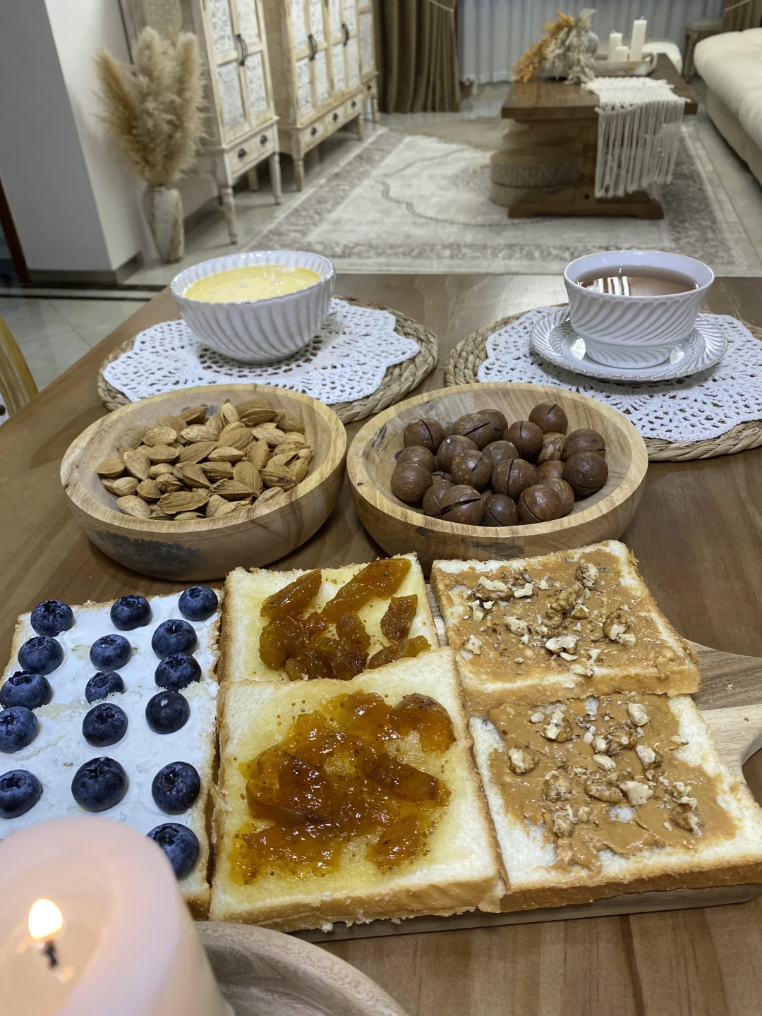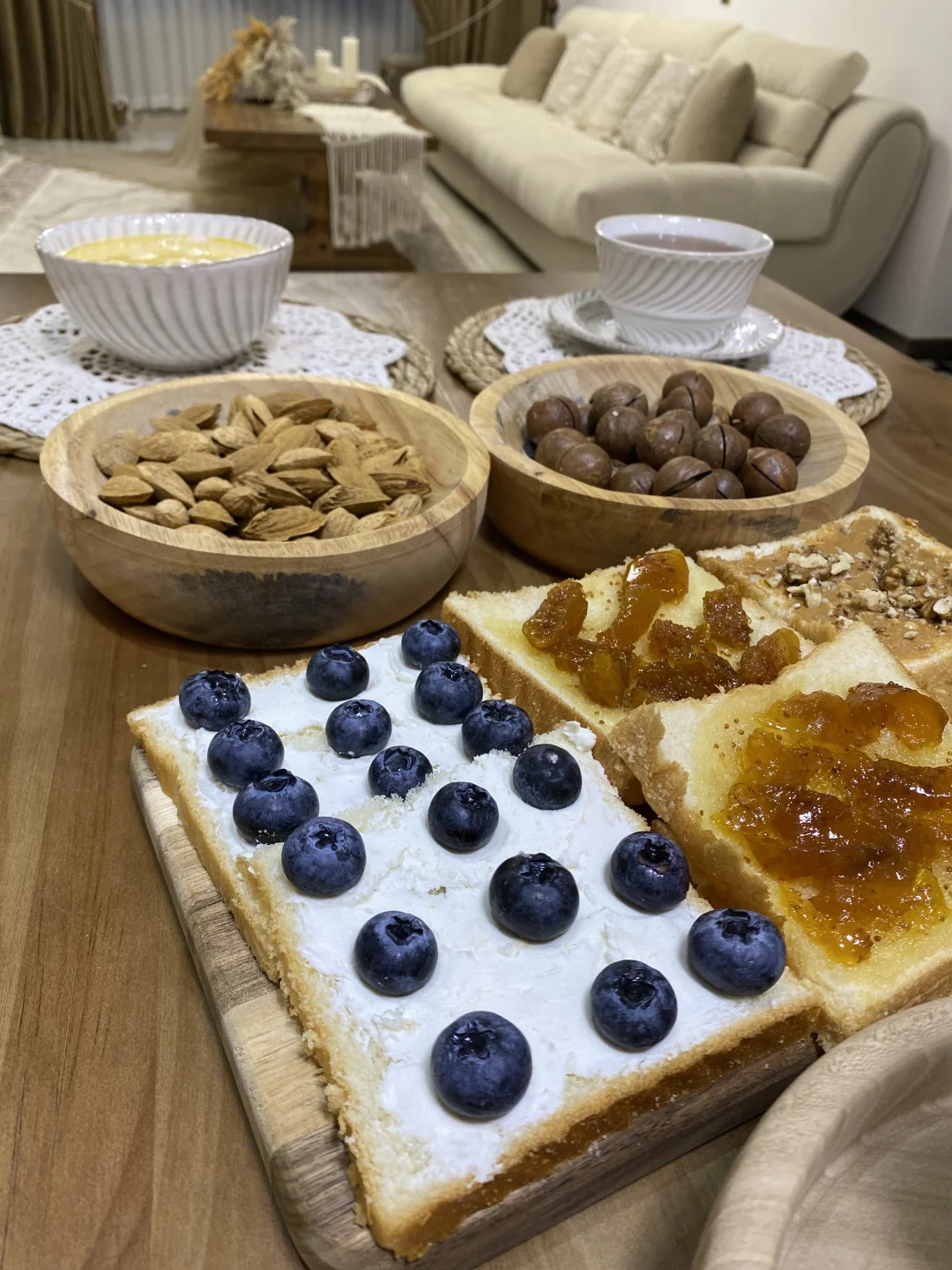木桌上铺满的治愈感早餐 .🫐🍞