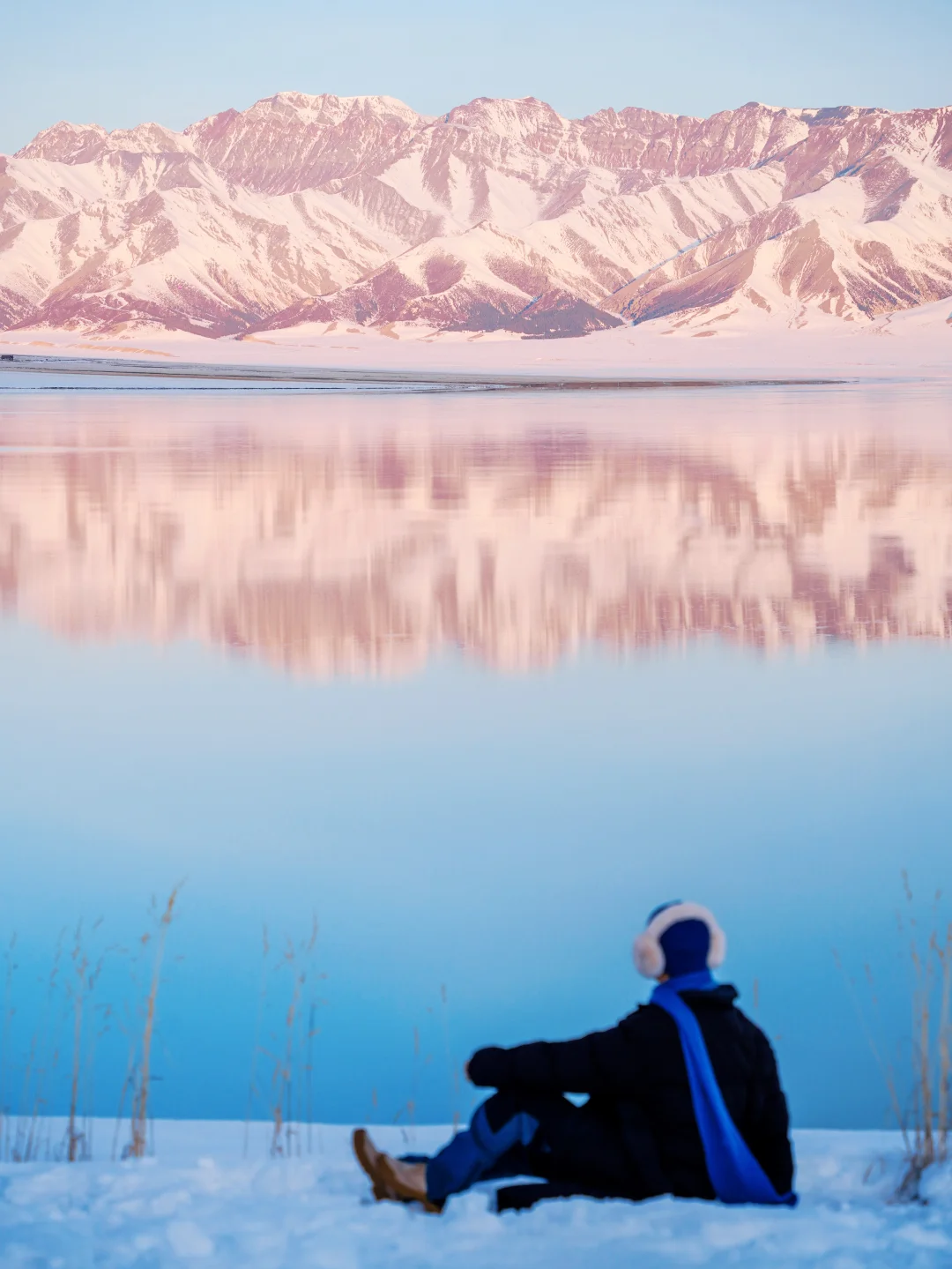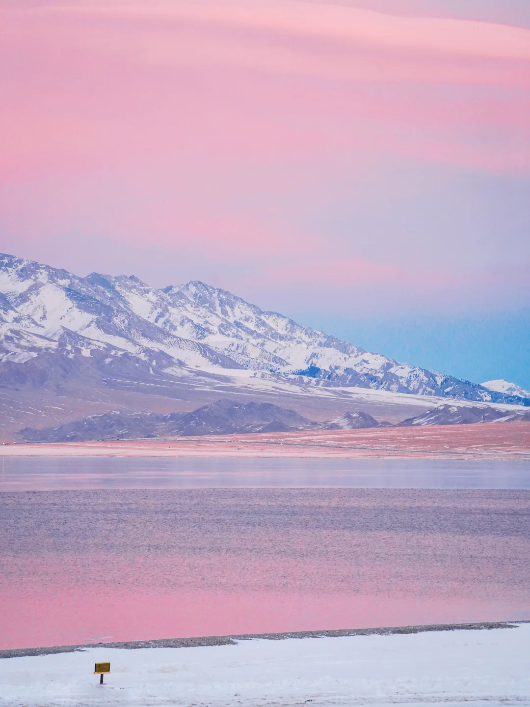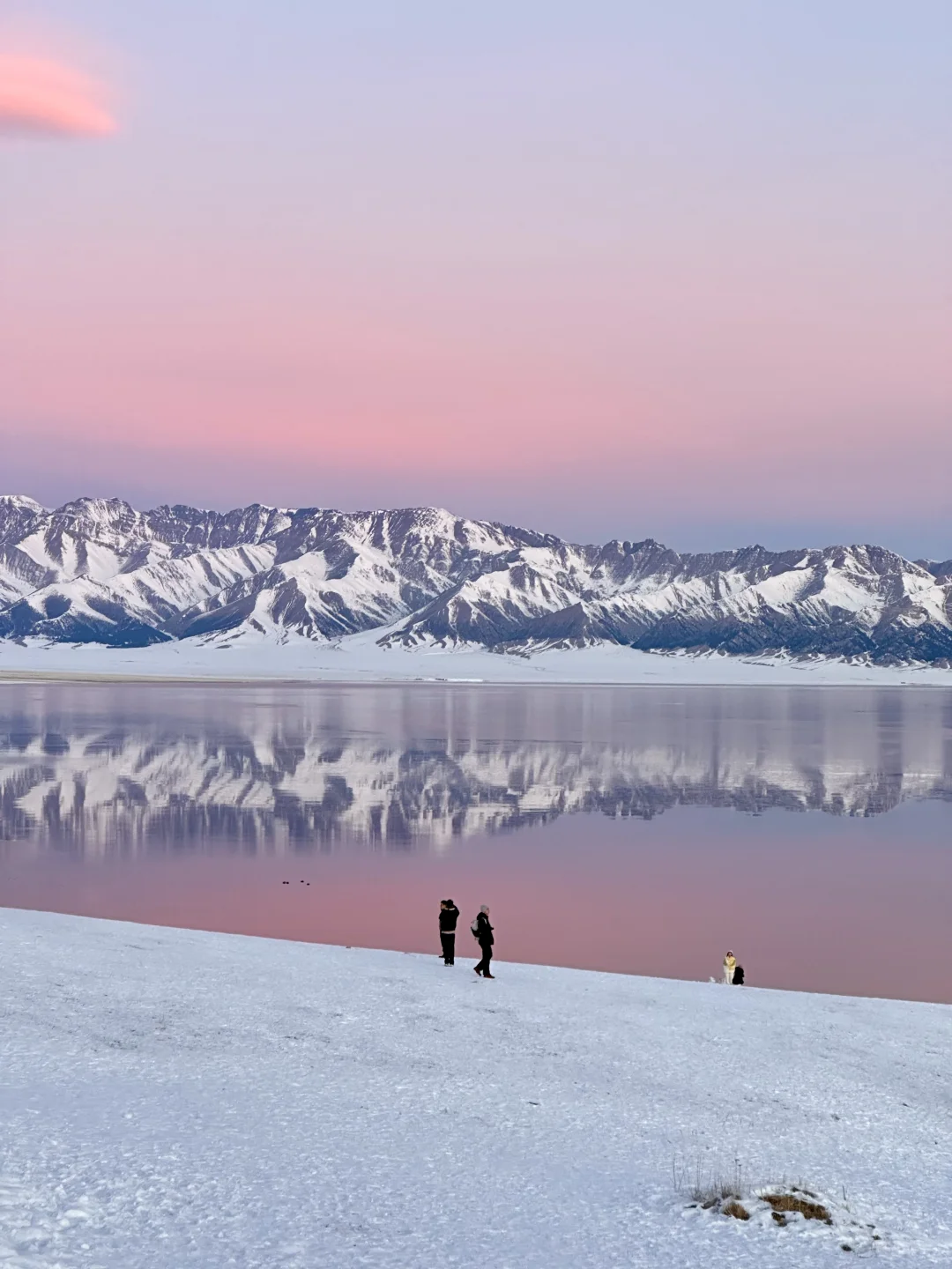 雪山倒影在湖里+粉色加持好梦幻