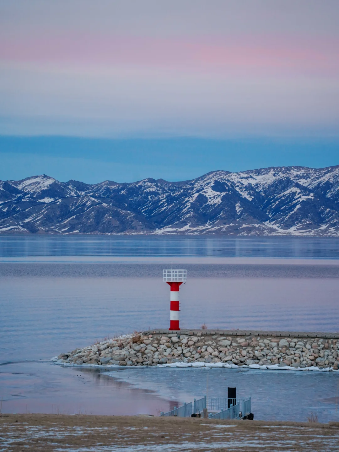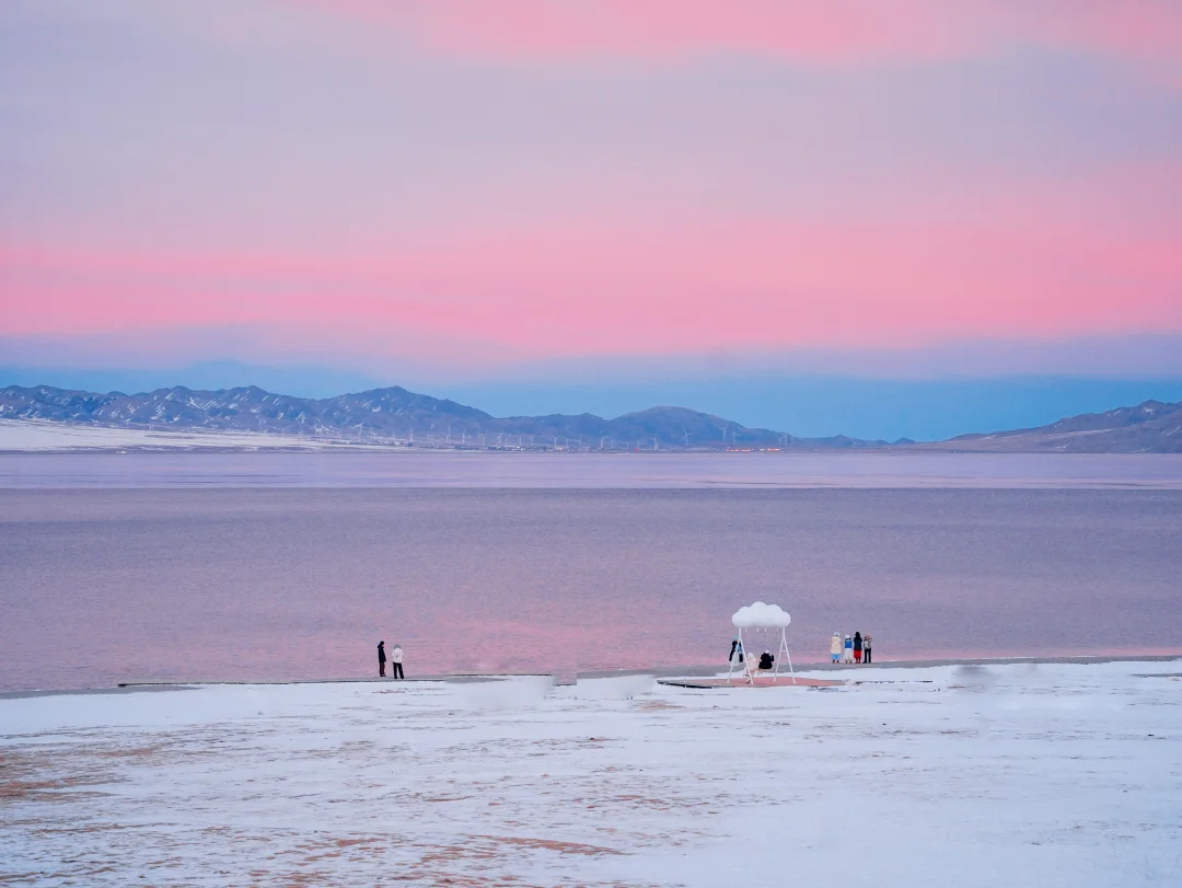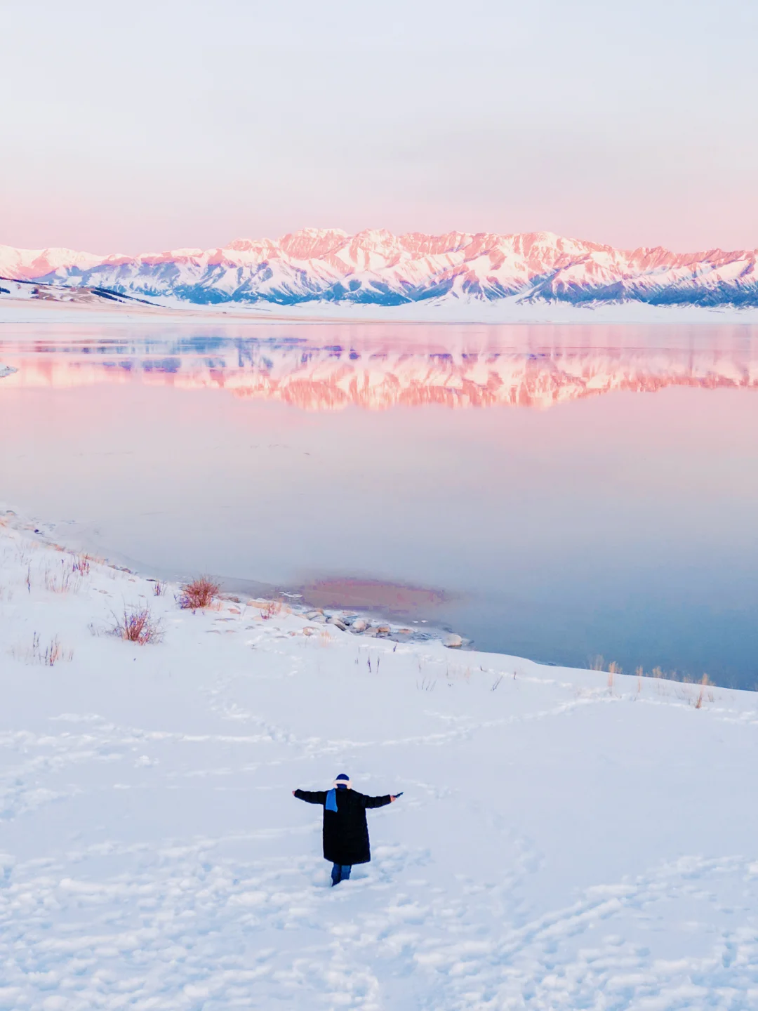 雪山倒影在湖里+粉色加持好梦幻