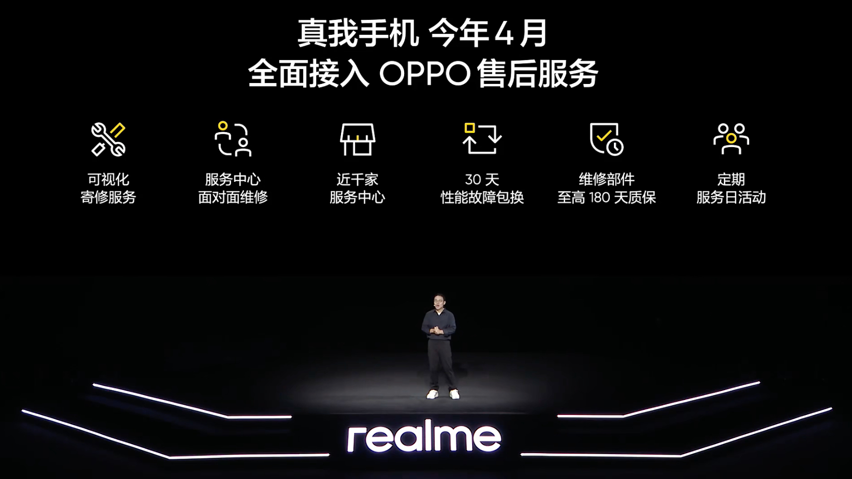真我Neo8的发布会开始了啊,徐起广场,各位都到了么。今晚也官宣一下,真我手机正式回归OPPO。4月份也会全面接入OPPO的售后服务。这下子,还有售后方面顾虑的小伙伴,可以彻底消除这个顾虑了吧。