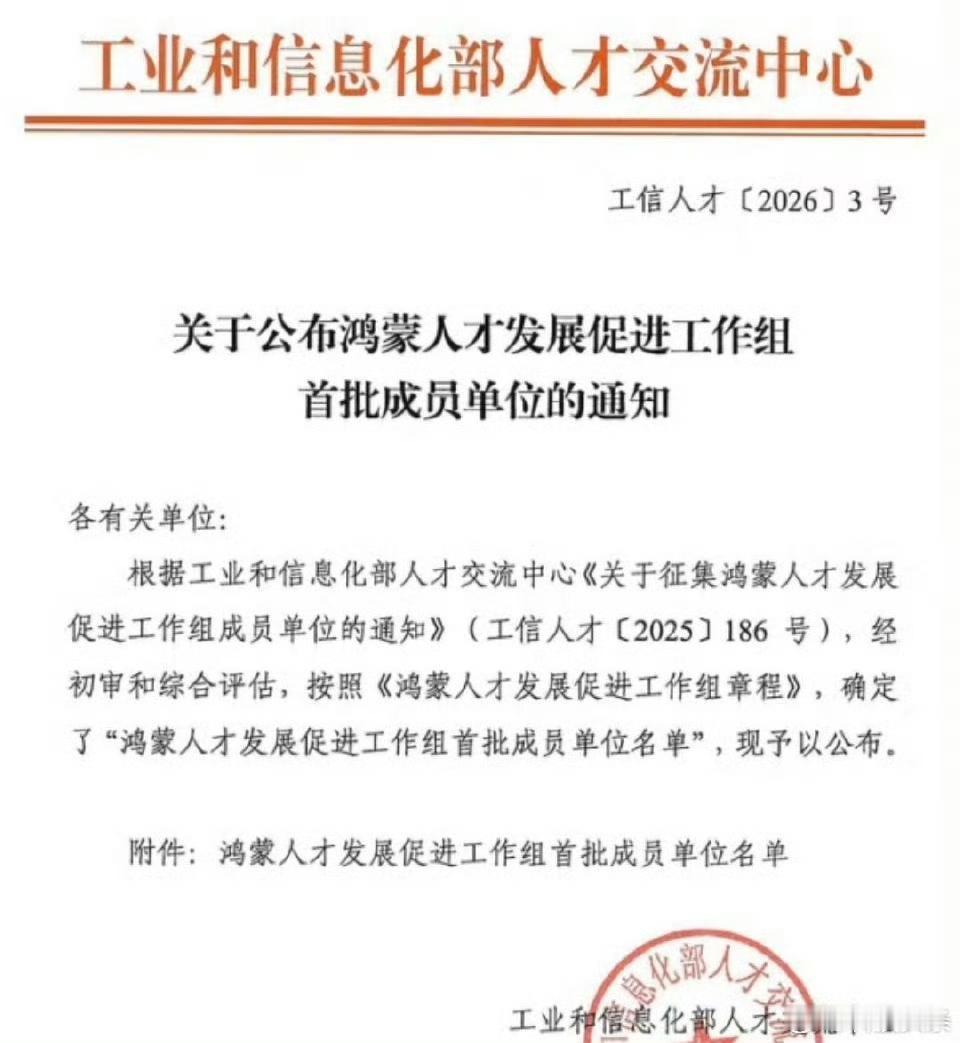 鸿蒙5 & 鸿蒙6装机量突破4000万,牛不牛? 不牛。 因为前些天就突破了,哈哈!!! 现在正努力奔向5000万。 同时相对于4000万,大家看到工信的信息没,「鸿蒙人才促进工作组」这才叫排面,首批就有139家单位。 从鸿蒙星光盛典,到工信发文加速强化与开源鸿蒙等操作系统适配,趋势很明确,意义很宏大。 同时,按照当下的发展速度,以鸿蒙微信正式版上线为起点,鸿蒙仅用了1年时间就完成了4000万装机量(重点,这可是在以旗舰机为主的前提下达成的哦),接下来1亿的史诗节点,肯定会在2026上半年达成。 总之,华为鸿蒙成为全球三大操作系统,不是随便说说,而是基于「自主可控」「海量装机」为前提。 马年,鸿蒙必将6到飞7,值得7待。