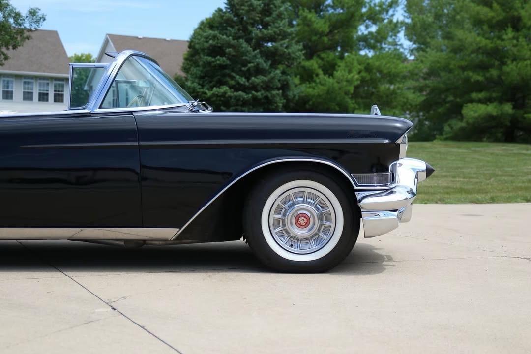 1957年Cadillac Series 62 Convertible代表了美国五十年代汽车奢华的极致:作为1957年款的敞篷旗舰,它搭载了365立方英寸V8,标准输出约300马力,并匹配Hydra-Matic四速自动变速箱,动力与舒适兼顾。 敞篷版车身尺码夸张——车长约220.9英寸、轴距接近130英寸,宽阔的镀铬格栅、夸张的尾鳍与流畅侧面勾勒出当年“越大越奢”的审美。 在战后经济繁荣与好莱坞影像美学的推动下,Series 62不仅是交通工具,更是身份的宣言:白色皮革、两-色车漆、低沉的V8咆哮与敞篷夜风,共同构成可以被听见的时代浪漫。它让人想起那个以体量、光泽与享乐表达自我的年代——既是工业工艺的夸张秀场,也是属于个人记忆与公众想象的一段私密插曲。 汽车文化