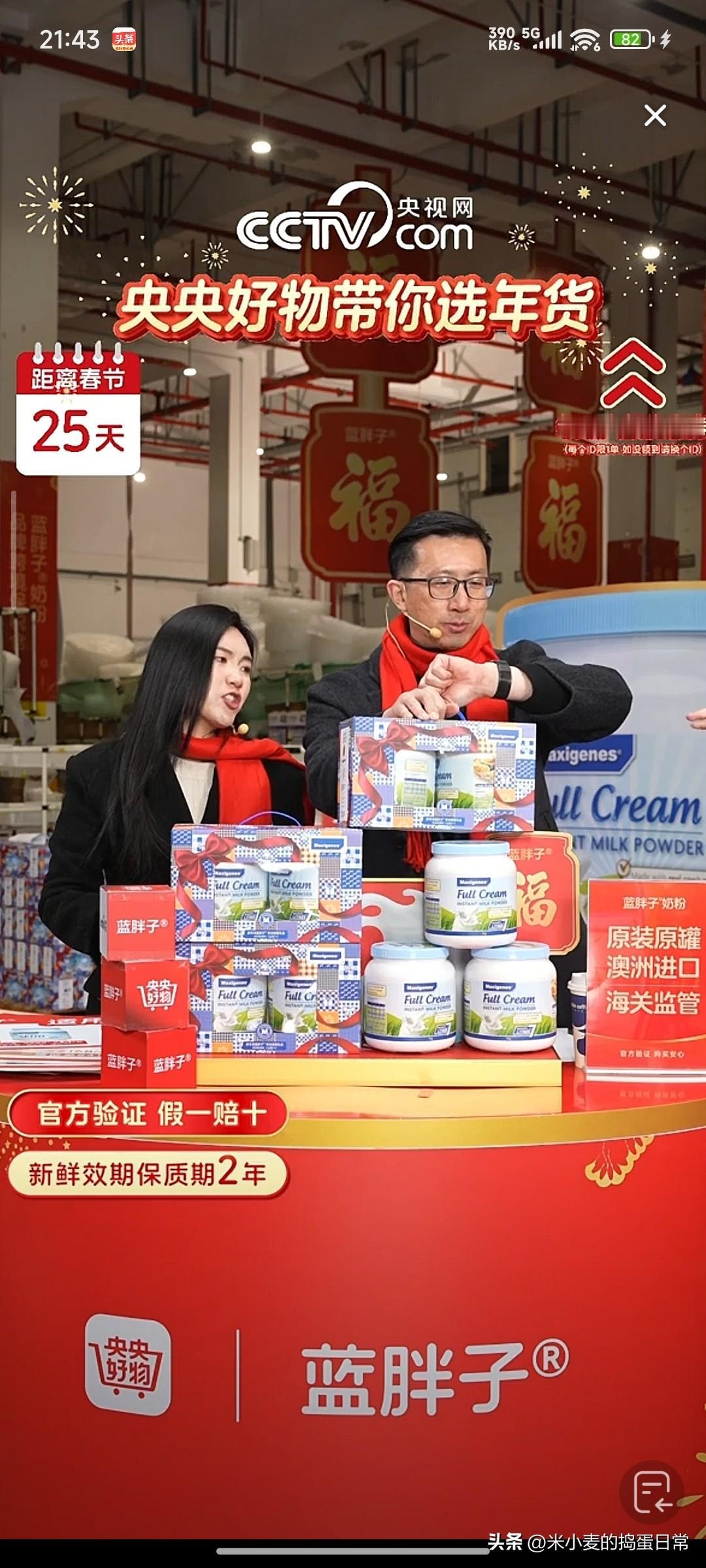 央视网才是隐藏的“带货一哥”! 千万人在线抢货,比董宇辉还猛! 谁能想到,平时正儿八经做新闻的央视网,一转身成了全网最狠的带货王! 这场“央央好物带你选年货”直播直接杀疯了!镜头对准保税仓,蓝胖子奶粉刚上架就被抢空,实时在线人数飙到800万+,评论区全是“已拍”“求加库存”的呐喊。 没有花哨的段子,也没有煽情的故事,靠着“官方验证、假一赔十”这八个字,就让观众心甘情愿掏钱包。