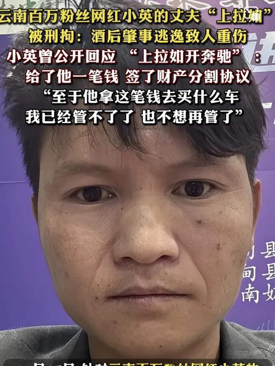 网红小英的世界应该清静了。作为她的前夫上拉如喜提缝纫机进去了。 这或许多少都有上拉如的一些因果报应。 上拉如的确亏待了小英。小英亲口说出了上拉如对待婚姻的不忠。 每个男人如果不出轨, 家中有贤妻的,要好好对待,不要节外生枝。 小英的走红可以说是勤劳致富。 两个人都是贫困区里爬起来的富人。 真正功劳最大的就是那个开直播卖力气的小英子。 上拉如少了一点点观众缘与努力。 说来也怪,有钱了,男人真的会飘。 婚姻穷时好好的,富了就分崩离析了。 说到底都是钱惹的祸。 也罢,各自生活节奏快了,回不去了。 一个困在牢里,一个困个感情的回忆里。 网红小英 小英直播间 小英老公