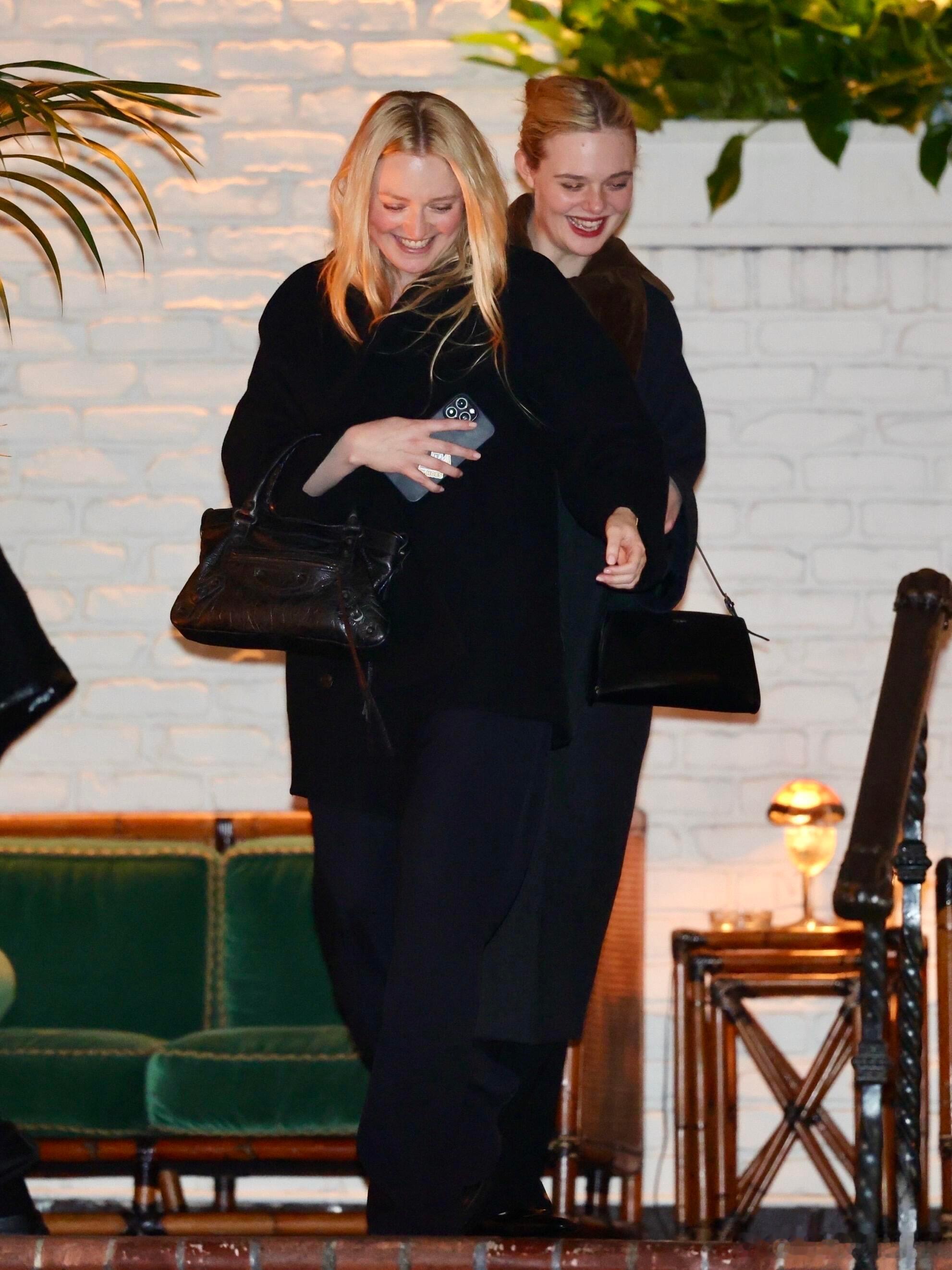 妹妹首提奥斯卡姐妹俩洛杉矶共进晚餐,ElleFanning身穿RomeoGi