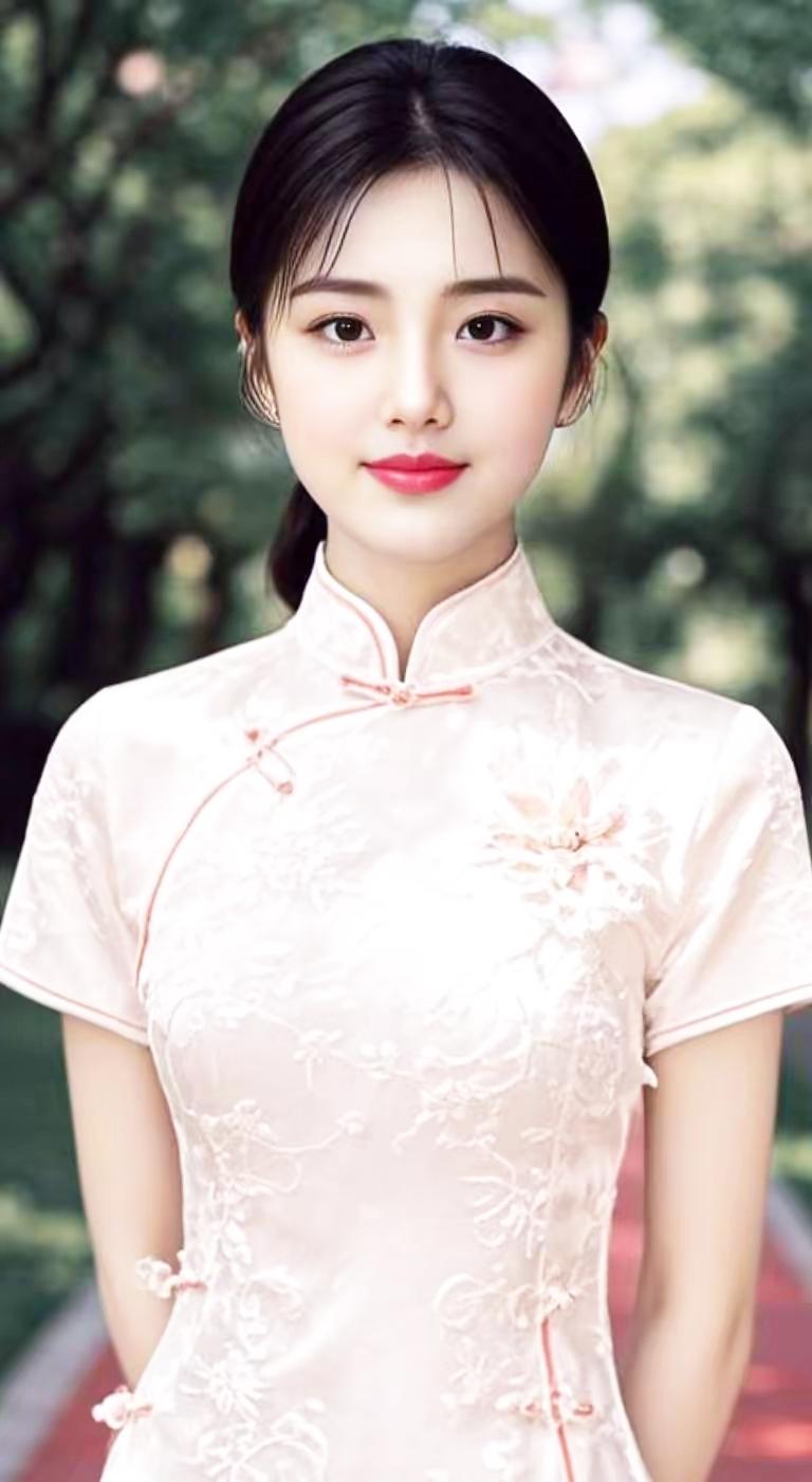 樱花树下,优雅少女,粉色旗袍,春意盎然。🌸💕