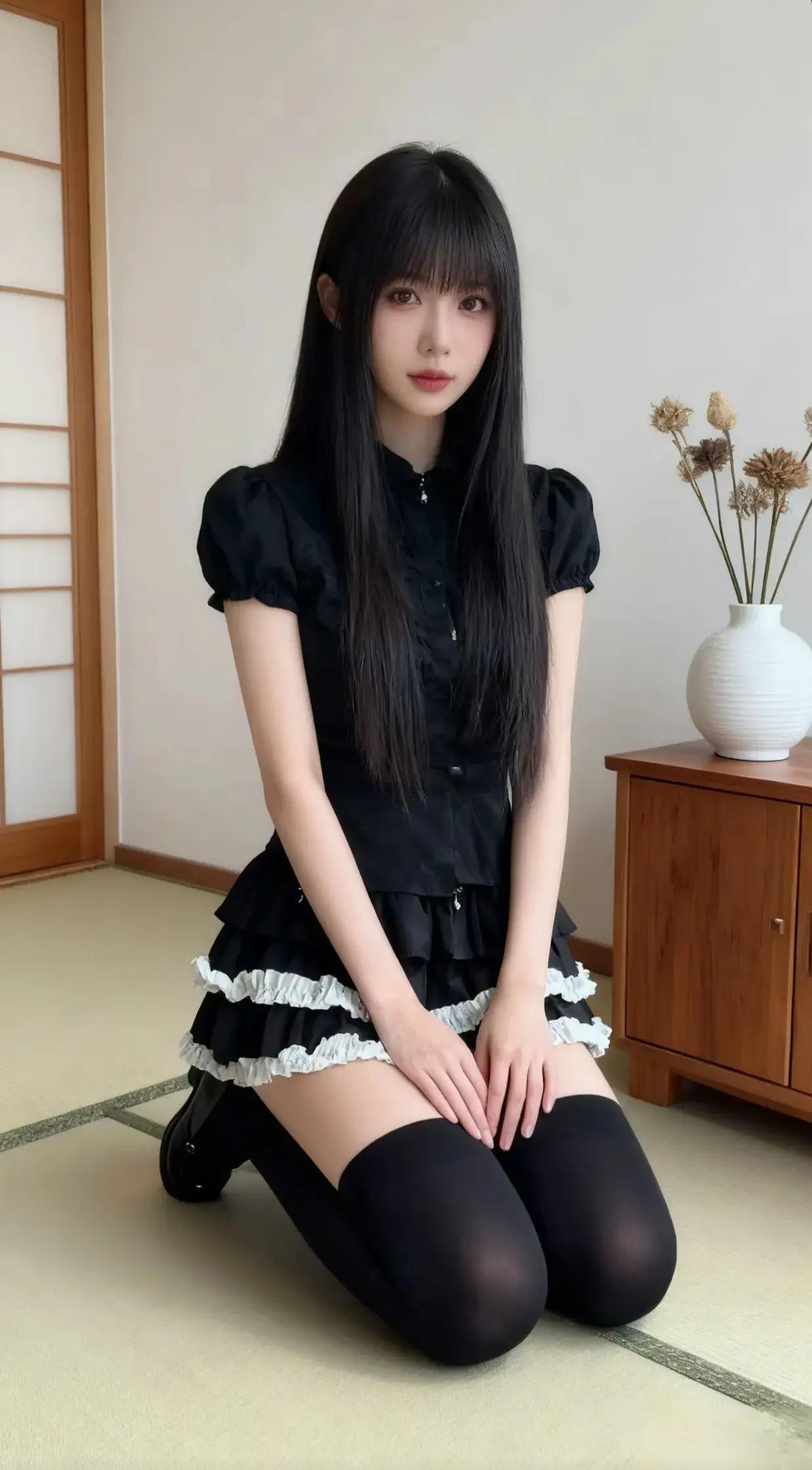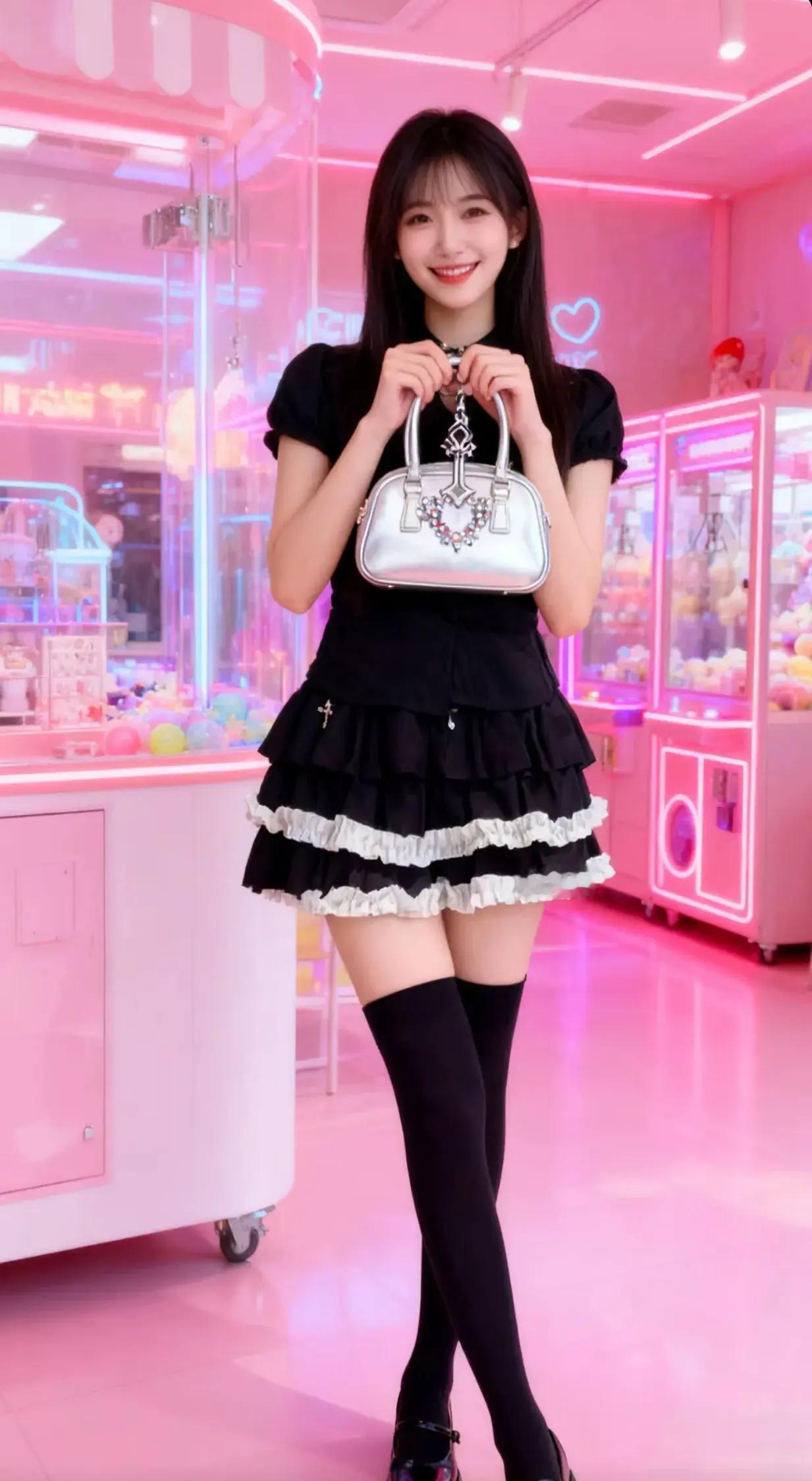 穿白色T恤和黑色丝袜,搭配白色袜子,简约又时尚!📸💄