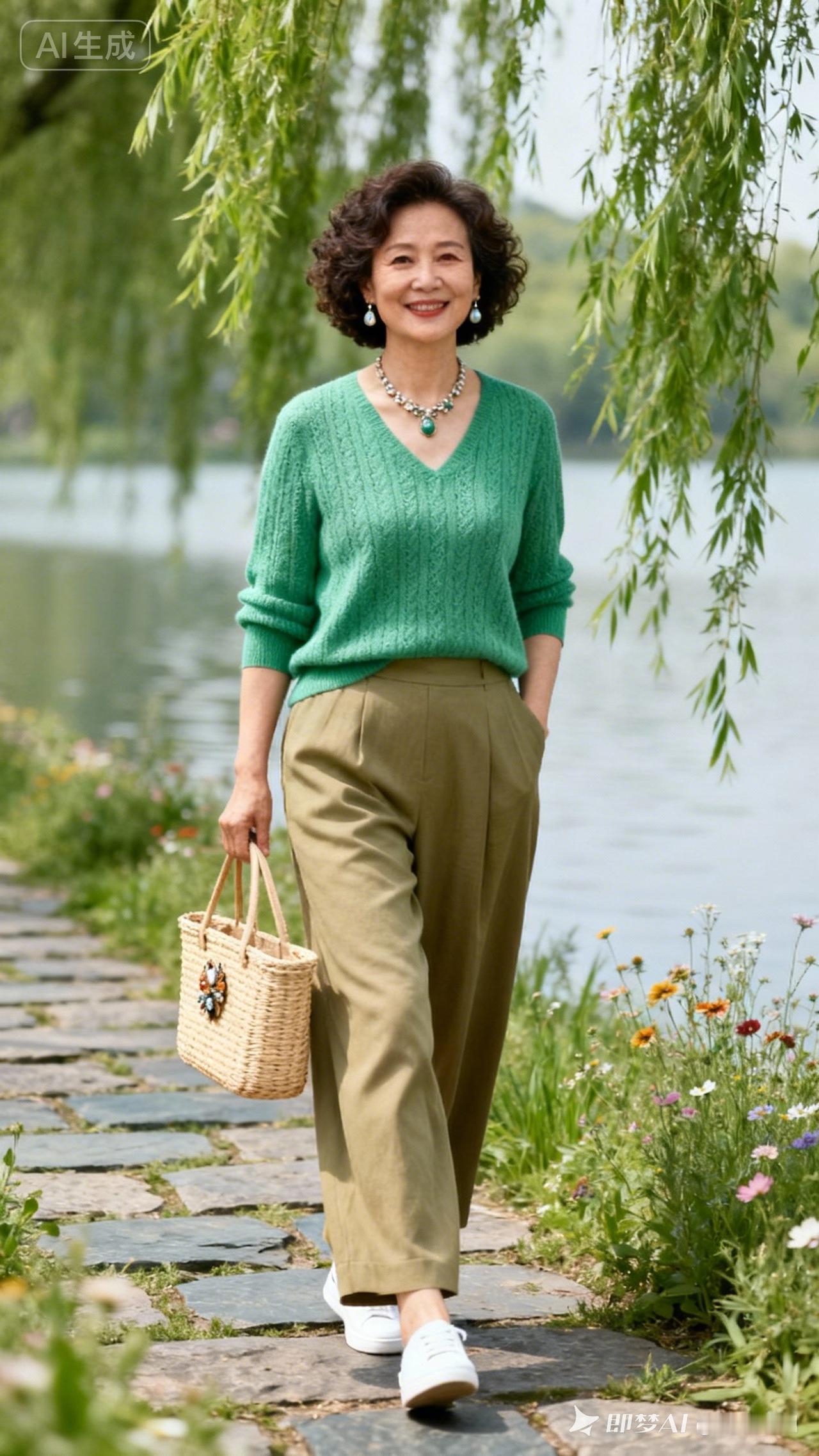 优雅漫步湖畔,绿意盎然,时尚穿搭!