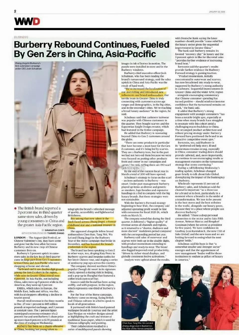 wwd点名表扬张婧仪,用她2024秋冬Outwear厂告图放大做重要图例,待遇