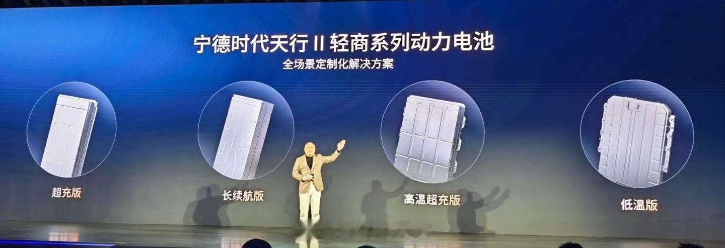 宁德时代发布天行II轻商系列动力电池,其中低温版采用行业首款量产钠电池,在零下 40℃ 仍保有 90% 可用电量。同期发布的还有超充版、长续航版、高温超充版及换电版,为轻商车辆提供全场景解决方案。宁德时代308_IO新能源汽车