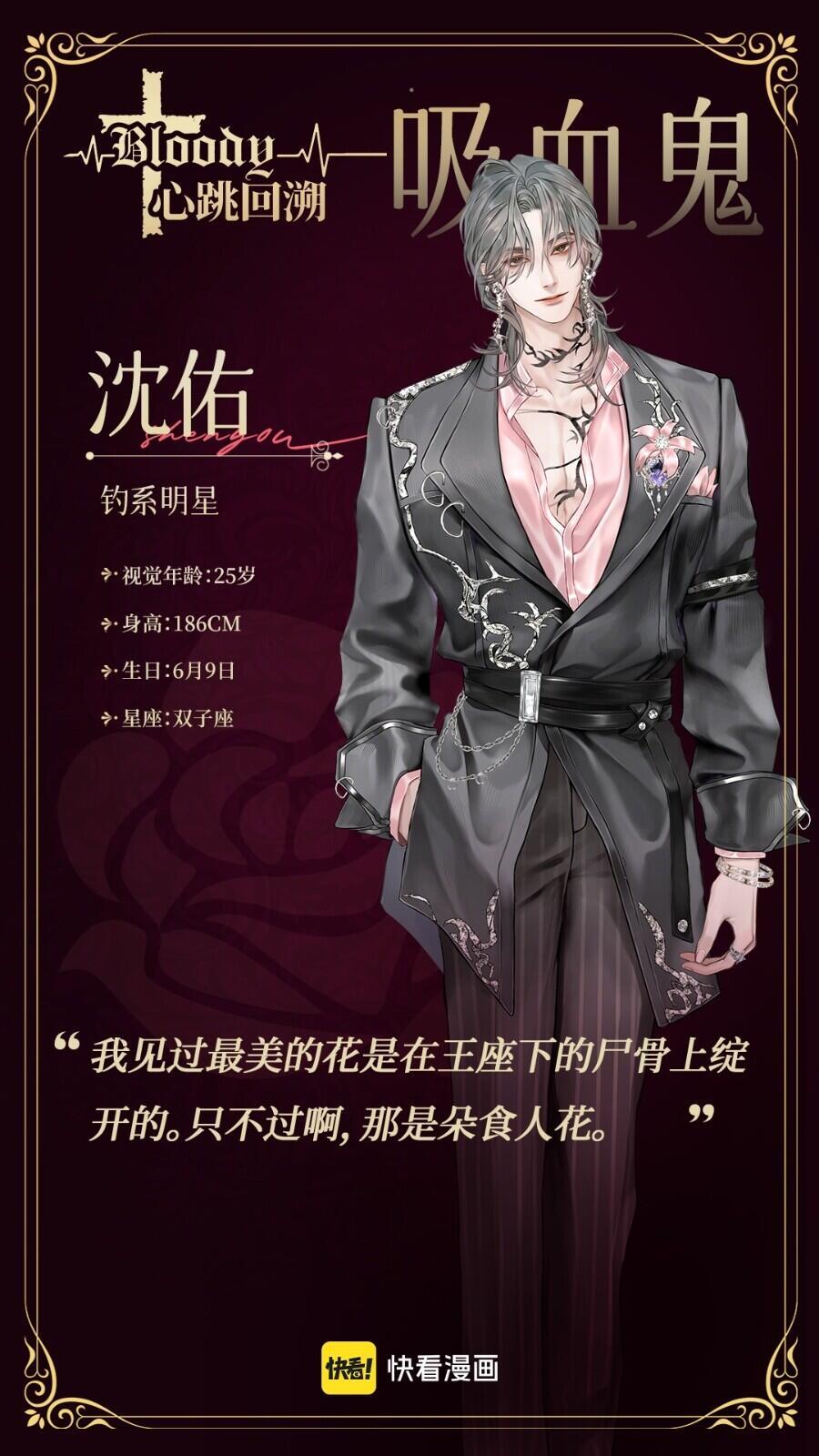 没人能拒绝国漫魅魔吸血鬼被《Bloody心跳回溯》的四个角色勾走魂了!混血吸血鬼傅枭在权力场游走,霸总气场混着毁灭欲,张力绝了;吸血鬼明星沈佑钓而自知,粉衬衫配狼尾,每一帧都在勾人;竹马鹿迟白毛蓝眸,守护感拉满;狼人医生江牧白好rua又神秘