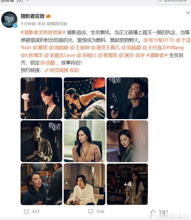 领衔主演张小斐于适猎影者导演张末 张小斐突破戏路加盟《猎影者》,与于适携手领衔,在张末导演执导下,演绎一场扣人心弦的硬核故事。