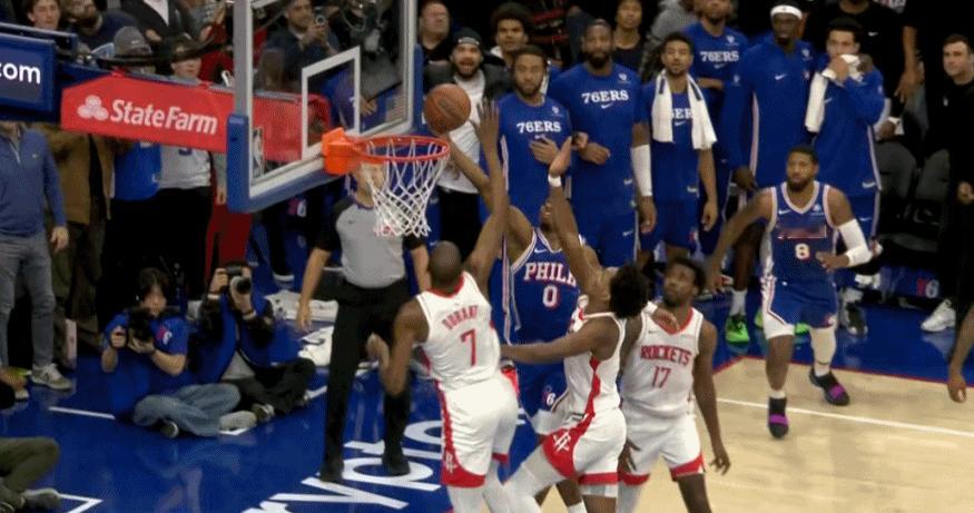 漏判!火箭队躲过一劫啊! 今天火箭队客场挑战76人队的比赛,马克西最后时刻的上篮绝杀被杜兰特封盖,慢放可以清晰的发现这是一个干扰球,马克西的上篮先碰到了篮板,随后杜兰特再进行了封盖,这百分百是一个干扰球,应该算马克西进球有效,76人队加上两分。但由于裁判并没有响哨,无法进入回看阶段,76人队只能无奈接受,火箭队躲过一劫,避免在常规时间被绝杀,双方进入加时赛!