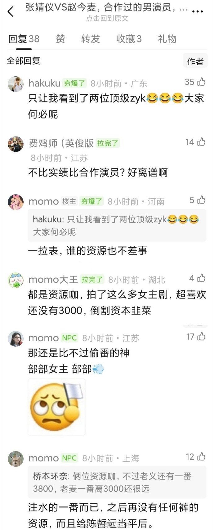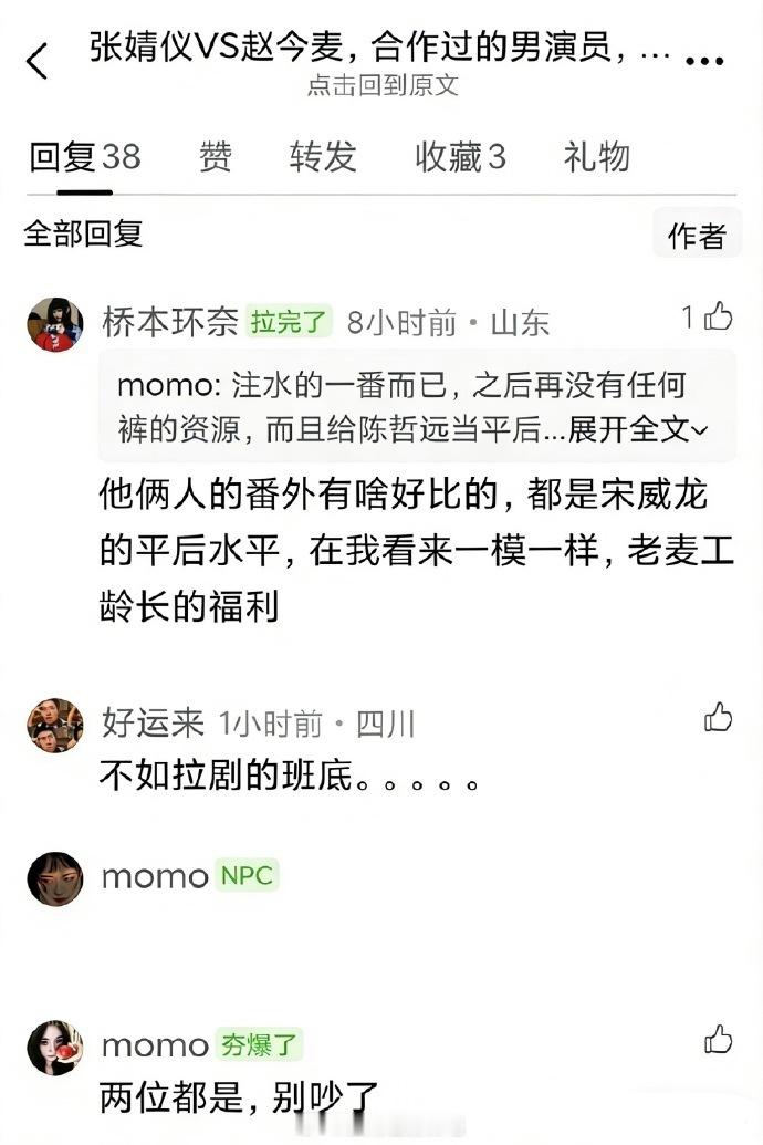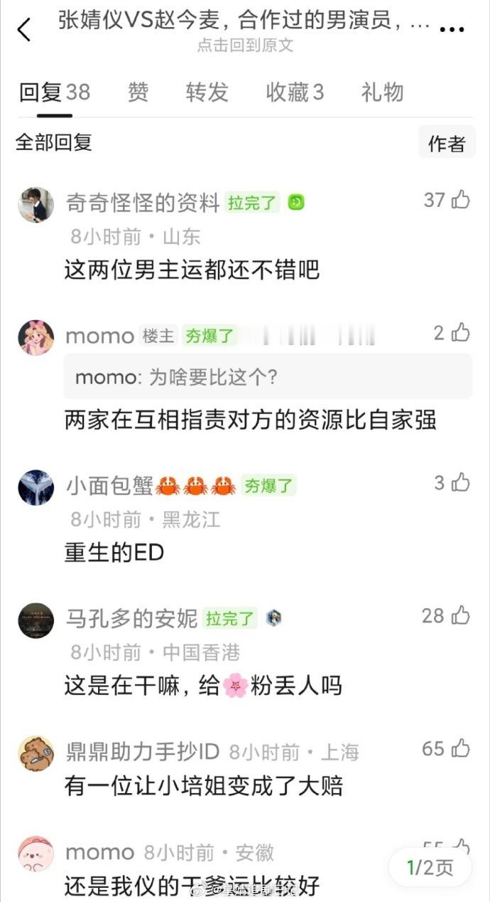 网友拉表对比了张婧仪和赵今麦过往合作过的男主,在看谁的资源更好只能说两个人的男主运都挺好的😹