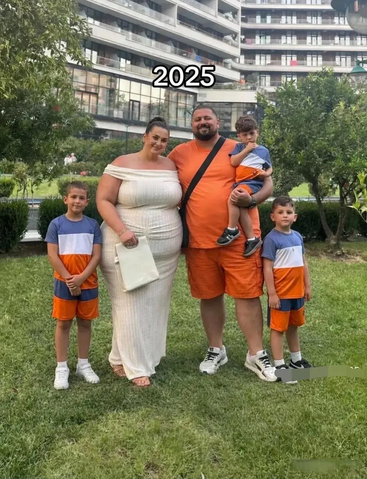 同样的两个人,相隔13年再次合影,夫妻两人已经变成了五口之家。