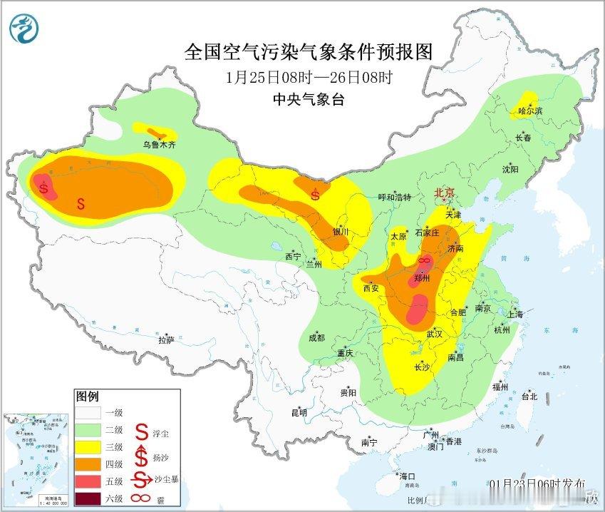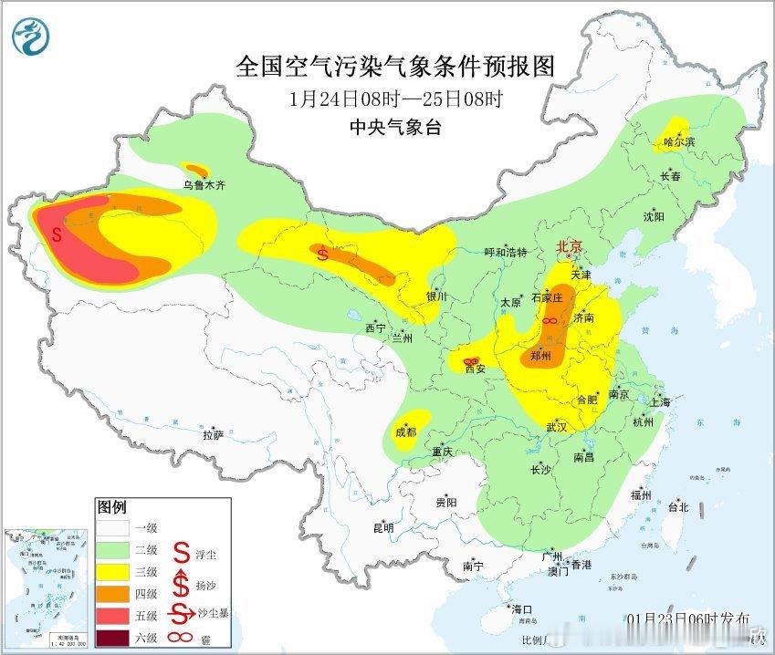 【雾 霾 沙尘】今晨在南方地区,降水过后湿度大,出现了分散的大雾。8时能见度:江西新建95米、万年104米、新干110米、峡江112米、崇仁124米、拿山153米、贵州盘州108米、重庆酉阳111米、秀山161米、湖南邵东118米、保靖158米、韶山163米、邵阳县172米、隆回186米、云南孟连173米,出现强浓雾。从今晨空气质量看,河南郑州、焦作、鹤壁、安阳、河北邢台、天津、辽宁营口有中度污染,对应有霾。新疆塔里木盆地的PM10依然超标,但沙尘浓度减小。今后3天,华北中南部、黄淮中西部、汾渭平原、四川盆地等地大气扩散条件较差,有轻至中度霾天气。25日,受冷空气影响,华北中南部霾天气减弱或消散。此外,24日至25日,受冷空气大风影响,新疆南部和东部、青海西北部、甘肃中西部、内蒙古西部、宁夏等地的部分地区有扬沙或浮尘天气。