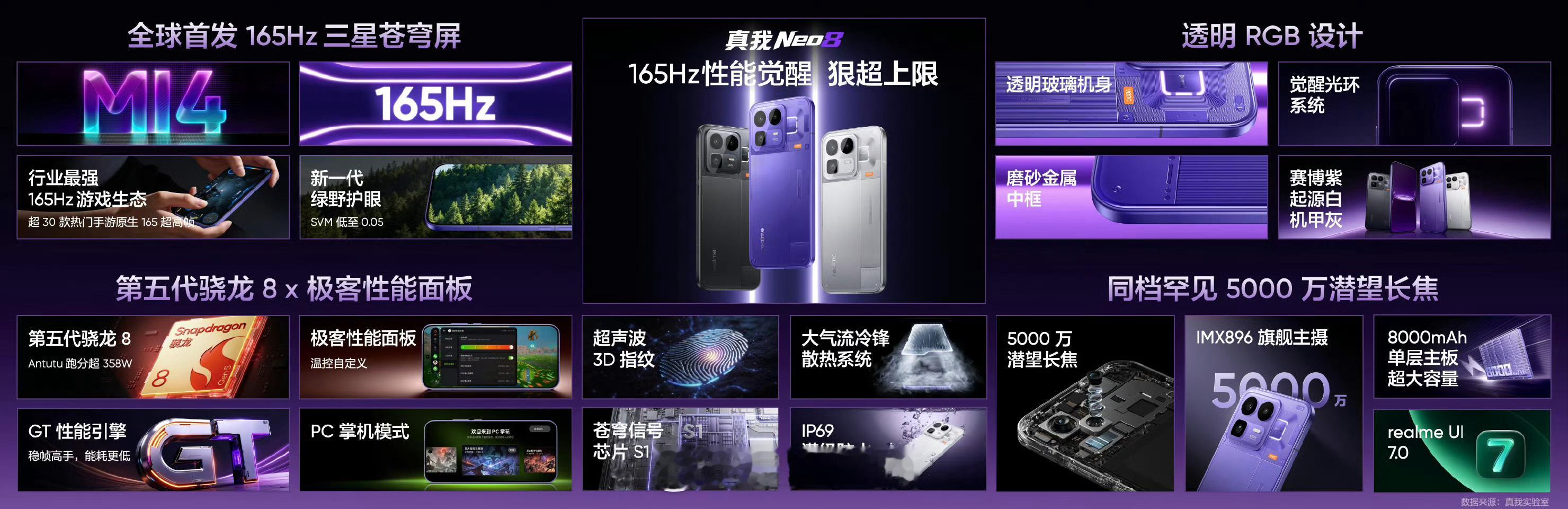 真我Neo8 开年越级王炸实锤!国补后2039.15起,16+1TB顶配才3199💰透明RGB潮玩设计直接封神✨ 单层透明工艺+机械浮雕,翻转点亮幸运色,赛博紫/机甲灰/起源白三色拉满个性,Make it real铭牌戳中潮玩DNA!165Hz三星苍穹屏太丝滑,30+手游原生高帧,全亮度DC调光+3800nit强光可视,护眼电竞两不误~第五代骁龙8+GT引擎跑分358W+,自定义性能释放+超大面积散热,PC掌机模式直连Steam玩3A!5000万潜望长焦打破中端机影像壁垒,8000mAh泰坦电池两天一充,80W快充回血超高效,IP68+IP69满级防尘防水全拉满💥硬件满配+价格真香,2000档性能屠夫这波直接焊门了!