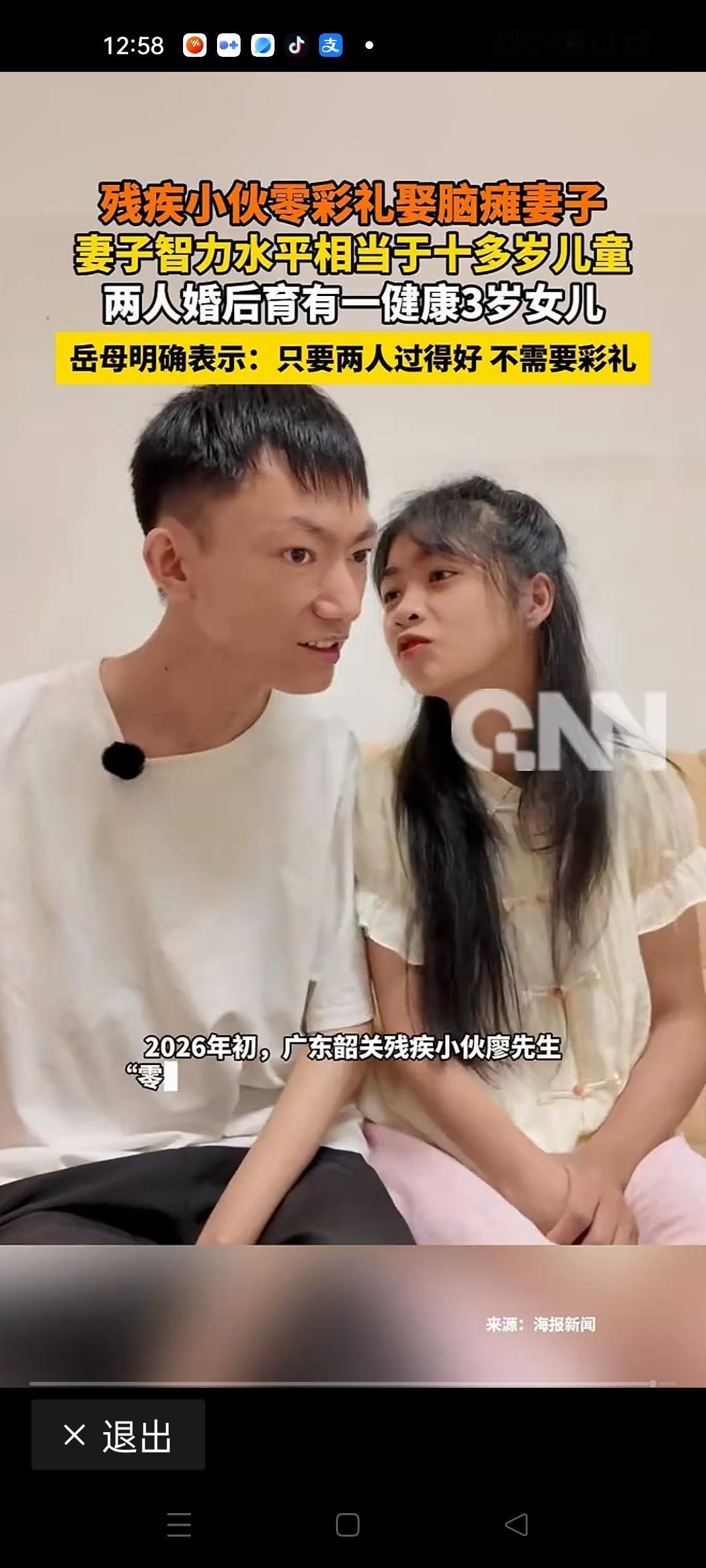 残疾小伙零彩礼娶脑瘫妻子:一个关于爱与坚韧的真实故事,打破偏见,温暖人心 在这个充满压力和偏见的社会里,有太多的故事被标签和偏见所掩盖。而今天要讲的,是一个普通小伙用行动书写的非凡爱情——他用爱和坚持,证明了真正的幸福从不依赖金钱或社会的偏见。 他是一个身体残疾的青年,没有雄厚的经济条件,没有所谓的“门当户对”,甚至在传统观念里,似乎“婚姻”都带着许多不确定性和风险。然而,他选择了一个特殊的女孩——脑瘫的妻子。没有彩礼,没有豪华的婚礼,他用最真挚的心,迎来了属于他们的幸福。 有人或许会质疑:“这样的婚姻能走多远?”但他们用行动告诉所有人:爱,是无关物质的,是心与心的契合。更令人感动的是,这对夫妻在面对生活的艰难时,从未放弃希望。女儿的降生,更是为这个家庭带来了无尽的温暖与希望。 这个故事,远比表面看起来更深刻。它让我们反思:在这个社会,偏见和歧视依然存在,但爱,永远是最强大的力量。残疾不是界限,而是让他们更懂得珍惜每一份真情。脑瘫妻子的坚韧,丈夫的包容,都在告诉我们:只要心中有爱,就没有克服不了的困难。 更令人震撼的是,这个家庭的故事,逐渐在网络上传开,激励了无数人。有人开始反思:我们是否太过于用物质衡量幸福?我们是否还相信,爱可以战胜一切?他们的故事,像一束温暖的阳光,穿透偏见的乌云,照亮了许多人的心房。 或许,这个时代最需要的,是更多像他们一样的勇气和坚持。在面对困难和偏见时,选择用爱去战胜,用行动去证明:幸福,从不设限。 看完这个故事,你是否也被深深触动?我们每个人都可以是那个传递温暖的人。让我们用理解和包容,去支持每一份真挚的爱,让这个世界变得更加温暖与美好。因为,爱,从来都不是简单的故事,而是最伟大的力量。无彩礼的婚姻 脑瘫女子