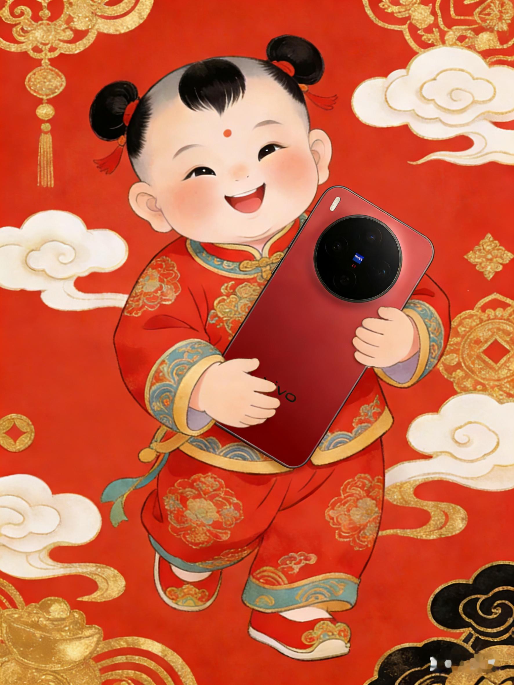 娃娃抱着锦鲤是年年有余抱着vivoX300幸运红那就是年年有幸运