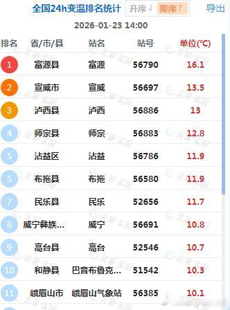 【升温】今天冷空气影响处于间歇期,我国大部地区在光照加热下,气温回升。尤其是昨天阴冷的云南东部,今天下午包揽了升温榜前五。云南富源升16.1℃、宣威升13.5℃、泸西升13℃、师宗升12.8℃、沾益升11.9℃。另外昨天下午不到0℃的湖南南部,今天下午也回到零上。