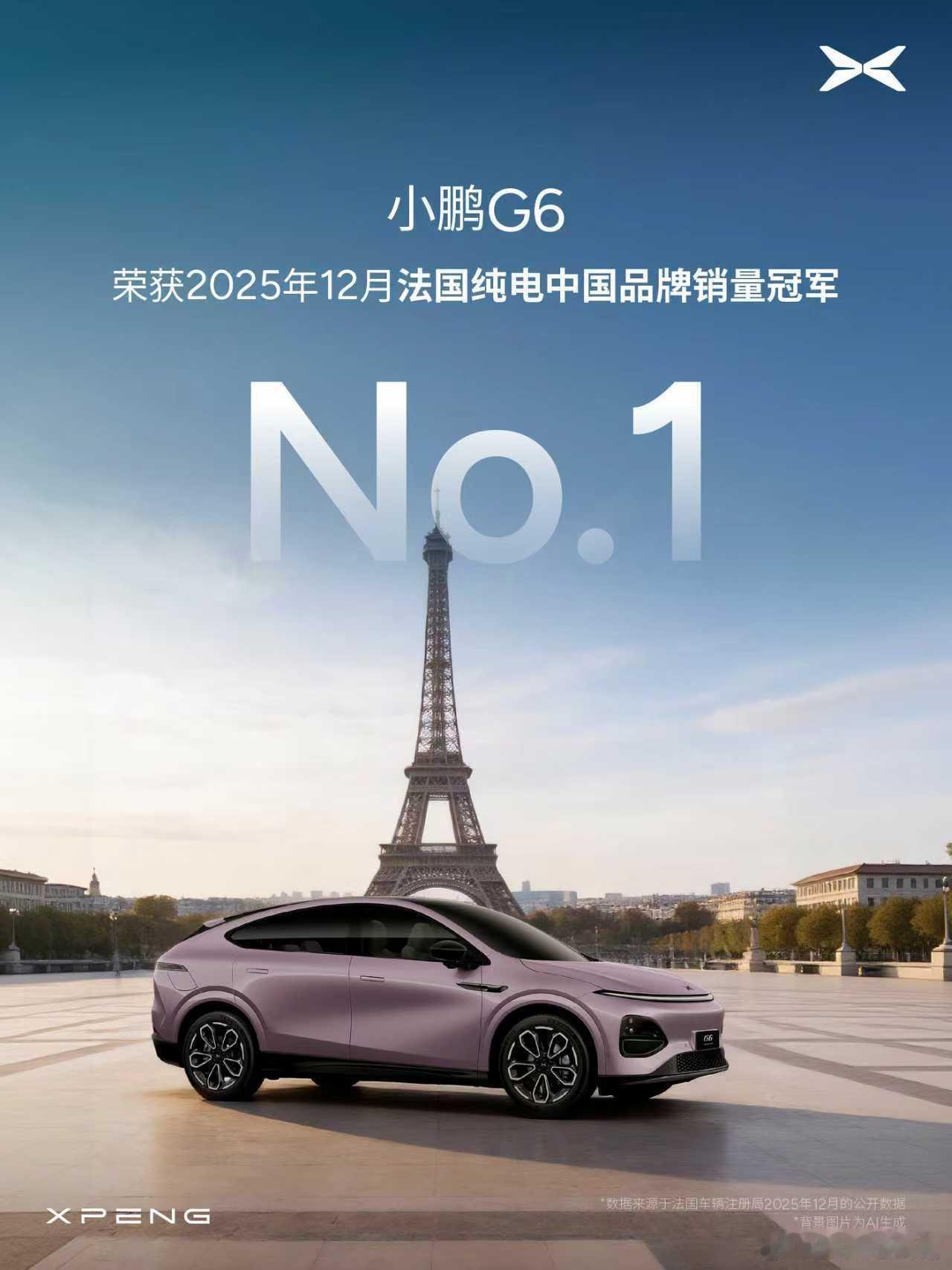 小鹏G6欧洲市场报喜,斩获德国中型纯电SUV年度销冠,并登顶法国12月中国纯电品牌销量第一!这已经不是小鹏G6第一次在欧洲拿登顶了,此前已在挪威、丹麦、芬兰等国多次拿下同级月度销冠,六项全能竞争力不断得到验证。 小鹏G6斩获德国中型纯电SUV年度销冠 、小鹏G6登顶法国12月纯电中国品牌销冠 全球销量走高的同时,口碑也获得权威认可。先后荣膺英国权威媒体“年度行政级汽车”大奖,荣获丹麦“2025年最受欢迎中国车”称号。德国第3000台车主在提小鹏G6时也表示:太赞了,尤其是智能体验、电池续航、内饰质感,是一次非常满意的决定。随着2026款小鹏G6焕芯升级,全系标配图灵 AI 芯片,主打一个科技平权,不加价享智能升级体验。从欧洲到全球,小鹏G6正以扎实的产品力,持续向世界展现中国智能汽车的硬核实力。