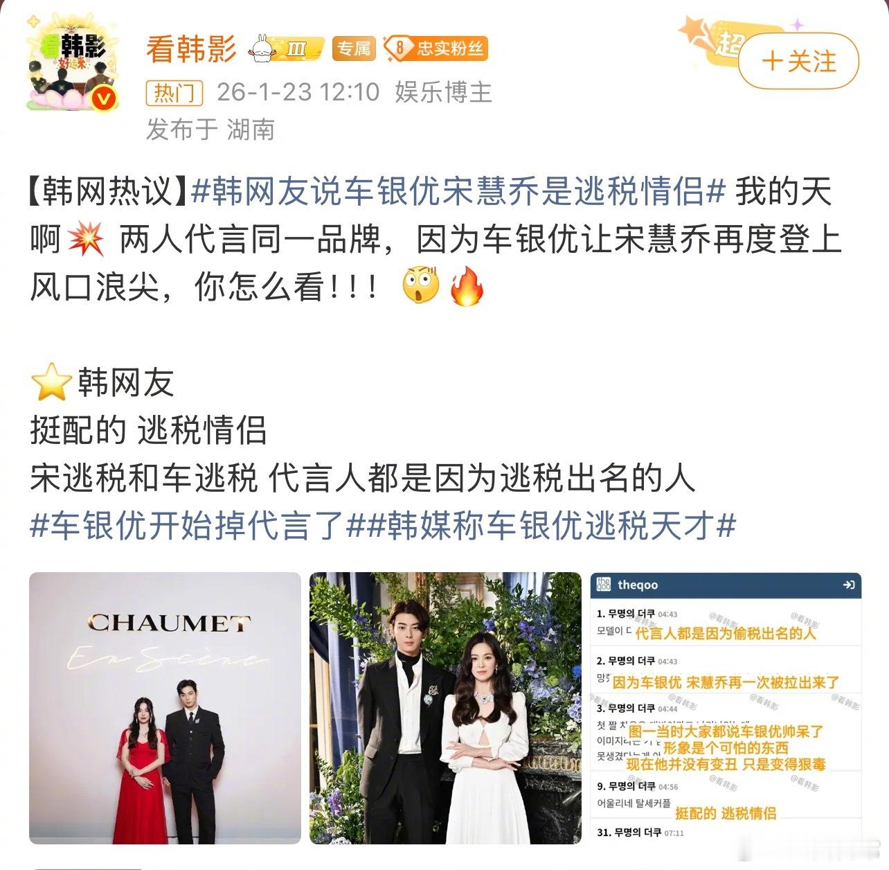 啥意思?宋慧乔也逃过税吗车银优宋慧乔被称为逃税情侣