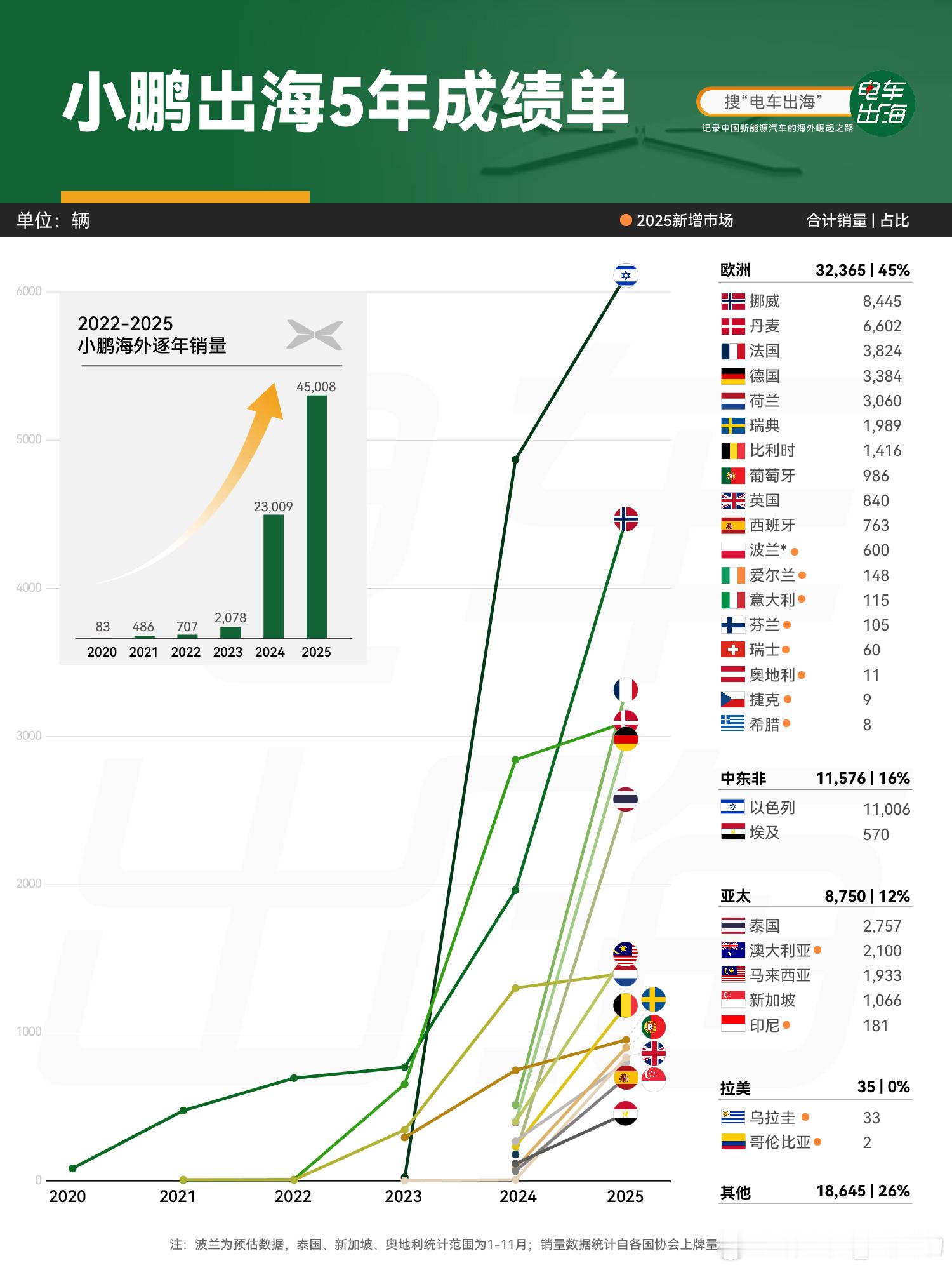 2025年,小鹏获新势力纯电出海第一!!2025海外纯电销量小鹏列自主品牌前二!鹏汽车2025年海外业务实现跨越式突破,全年海外交付量超4.5万辆,同比增长96%,稳居中国造车新势力纯电出海销量首位,自主品牌纯电第二位,仅次于比亚迪!在欧洲高标准市场,G6在挪威、丹麦等地多次位居中国品牌纯电车型销量榜首;在亚太市场,X9凭借产品差异化定位,连续多月领跑细分市场。2025年上半年,小鹏汽车海外交付量达18,701台,同比增长高达217%。2025年全年,小鹏汽车海外累计交付量达到45,008辆,同比增长96%再回看2024年,有些媒体对小鹏开始海外布局时期的各种谣言,不攻自破。小鹏汽车