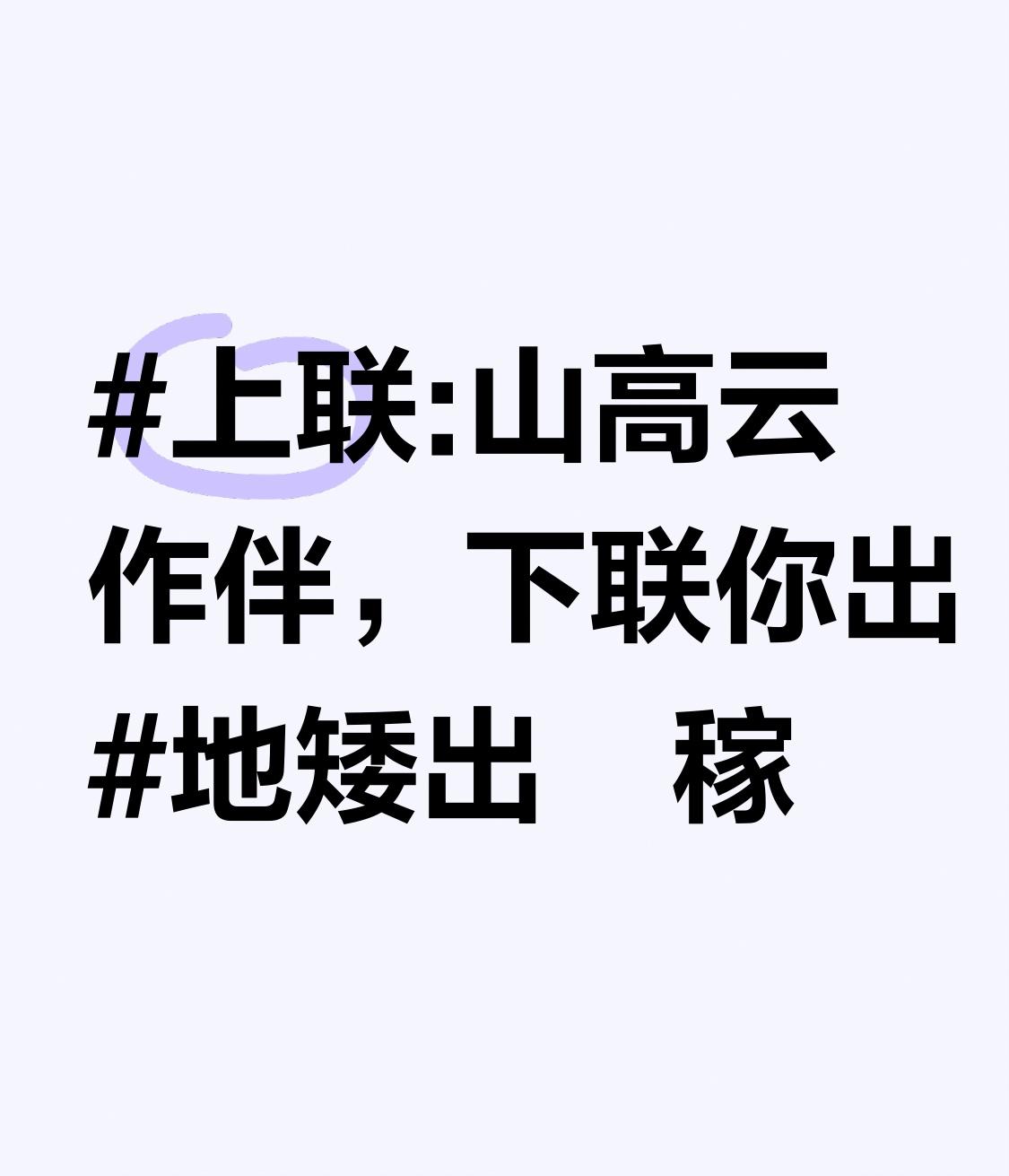 上联:山高云作伴,下联你出地矮出庒稼