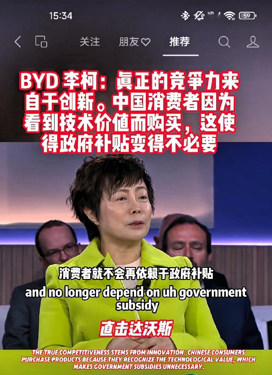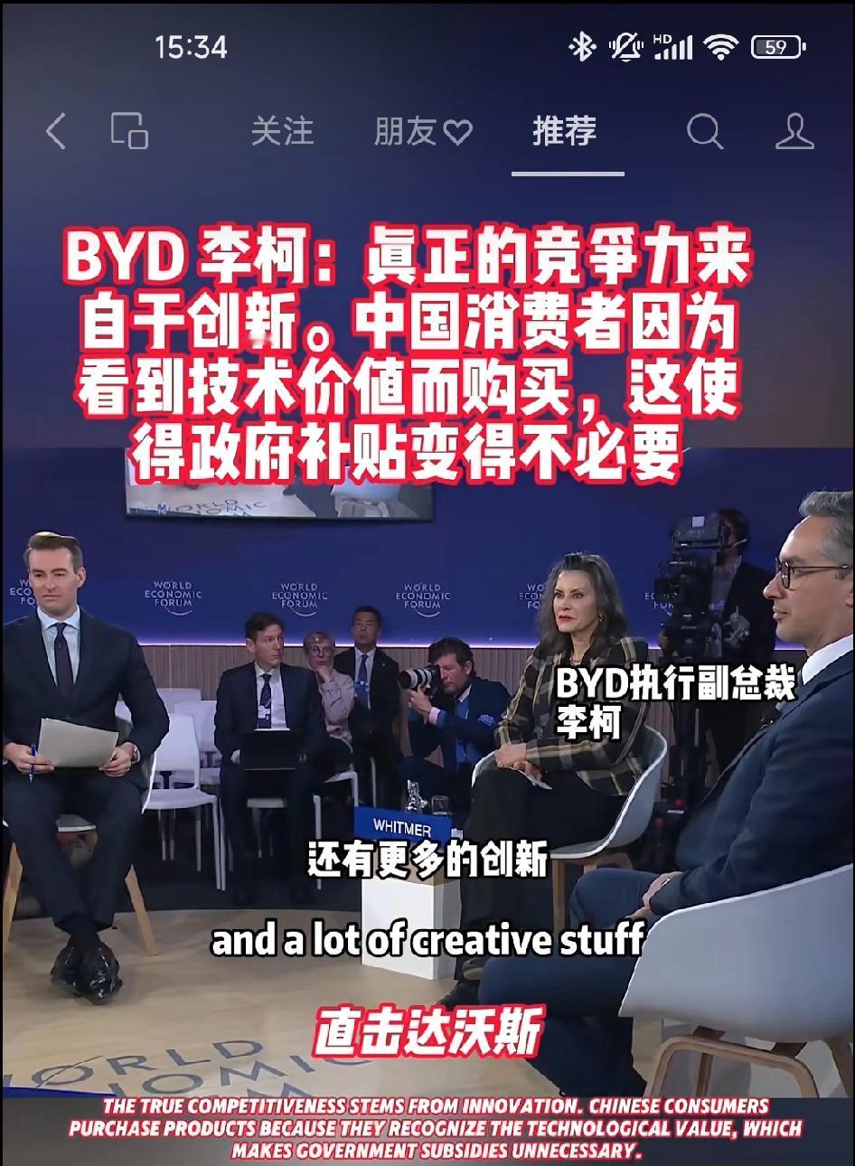 Byd李柯:真正的竞争来自于创新。 在中国,因为消费者感觉到电动车越来越安全,使用更省钱,性能上也有更好的表现,所以当客户充分意识到新能源车的好处时,消费者的购买决定就不会依赖于政府的补贴。 2025年,中国新能源汽车的渗透率超过52%,一旦渗透率超过30%,这个量就是巨大的,那么开始由消费者驱动。他们购买汽车是因为高科技属性和技术的创新,不断的创新又推动了客户的需求。