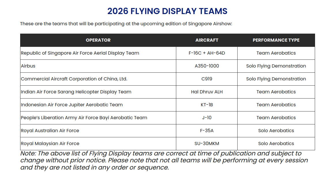 2026新加坡航展的飞行安排出来了,很多都是老面孔,不过新加坡天气还不错,有蓝