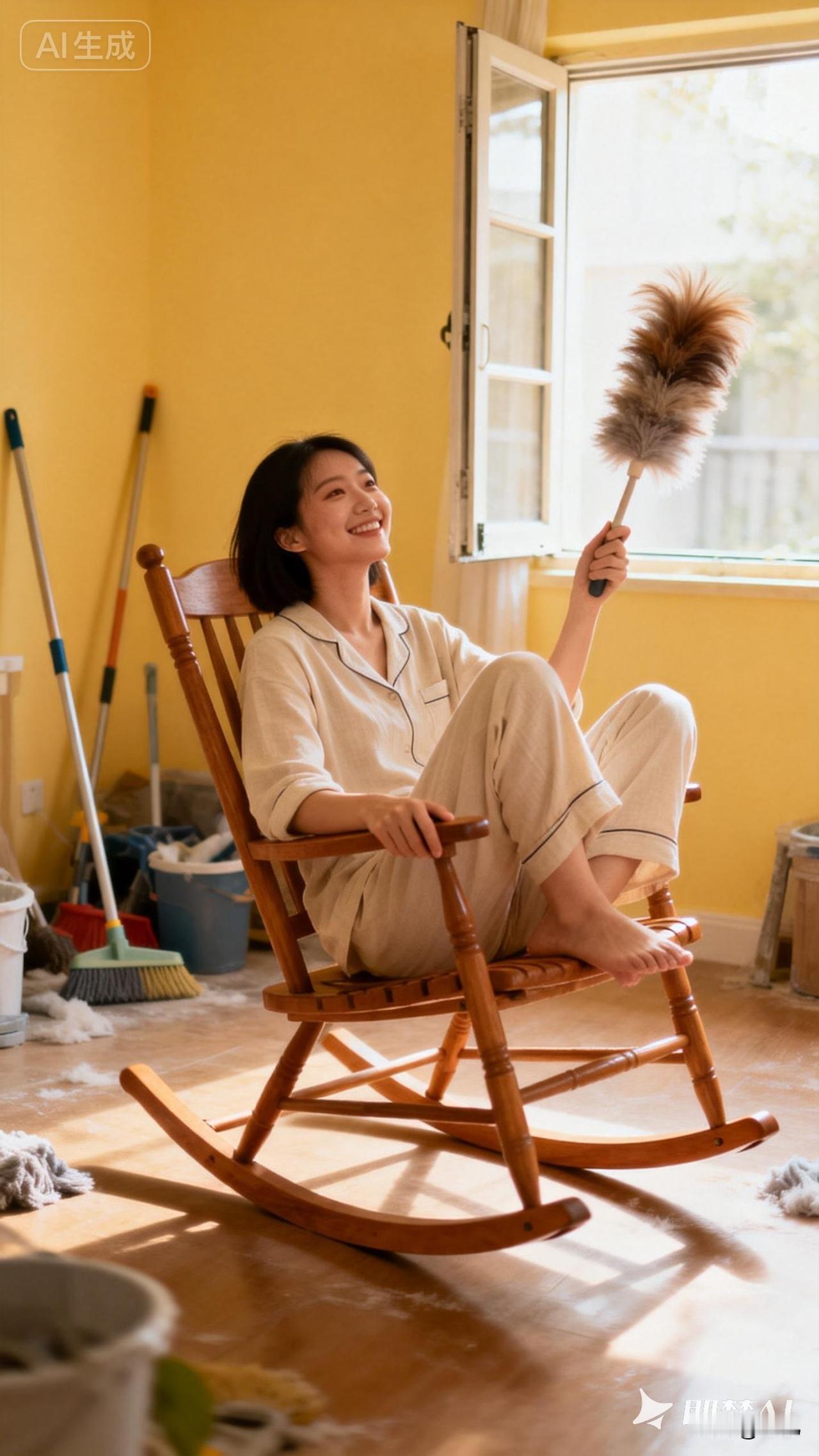 我两天赚了一千五 不用保洁员大扫除 奶奶说这点活儿不算个活儿 一天打扫一个房间 跟玩儿似的 听奶奶劝吃饱饭 窗玻璃擦不擦等下雨刷不擦 抽烟机换个新网不用洗 衣柜有门关着不用收拾 叠被子不健康不收拾床 窗帘太高不好卸不洗 扫房子荡灰尘不扫 除了清洗地面 洗洗床单 其它都用鸡毛掸子掸一掸 我先坐摇椅摇一会儿 省下一千五的保洁费过年 过日子得一分一分地攒 头条早就告诉我钱难赚