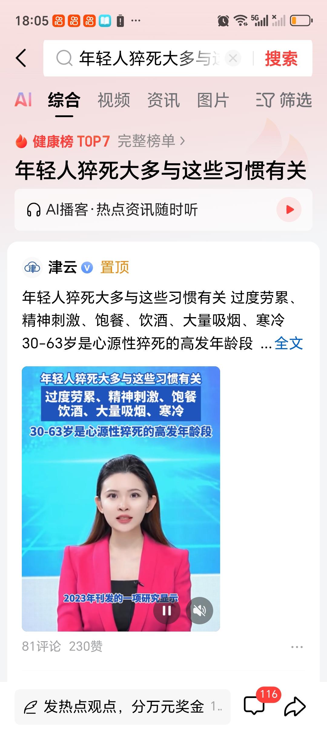 年轻人猝死大多与这些习惯有关 现在年轻人猝死的新闻真不少,这和一些习惯脱不了干系。首先就是熬夜,不少年轻人白天忙工作,晚上就熬夜追剧、打游戏。有研究表明,长期熬夜会使身体激素分泌紊乱,心脏负担加重。还有过度劳累,为了业绩拼命加班,身体得不到休息。之前有报道,一个程序员连续加班几周后猝死。另外,不健康饮食也很要命,高糖高脂食物吃太多,容易引发心血管疾病。年轻人还是得重视起来,别仗着年轻就肆意挥霍健康,养成好的生活习惯才是王道。