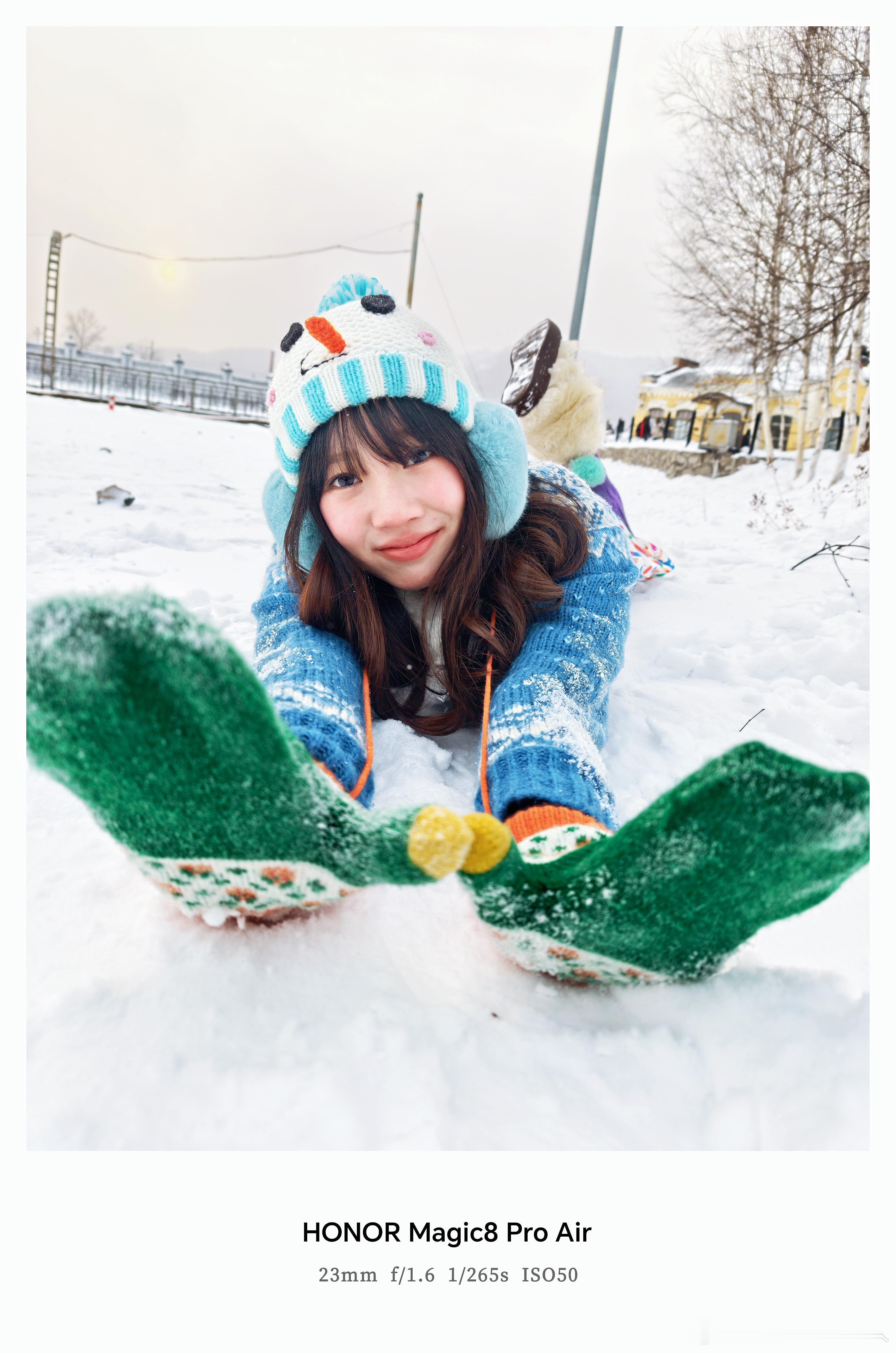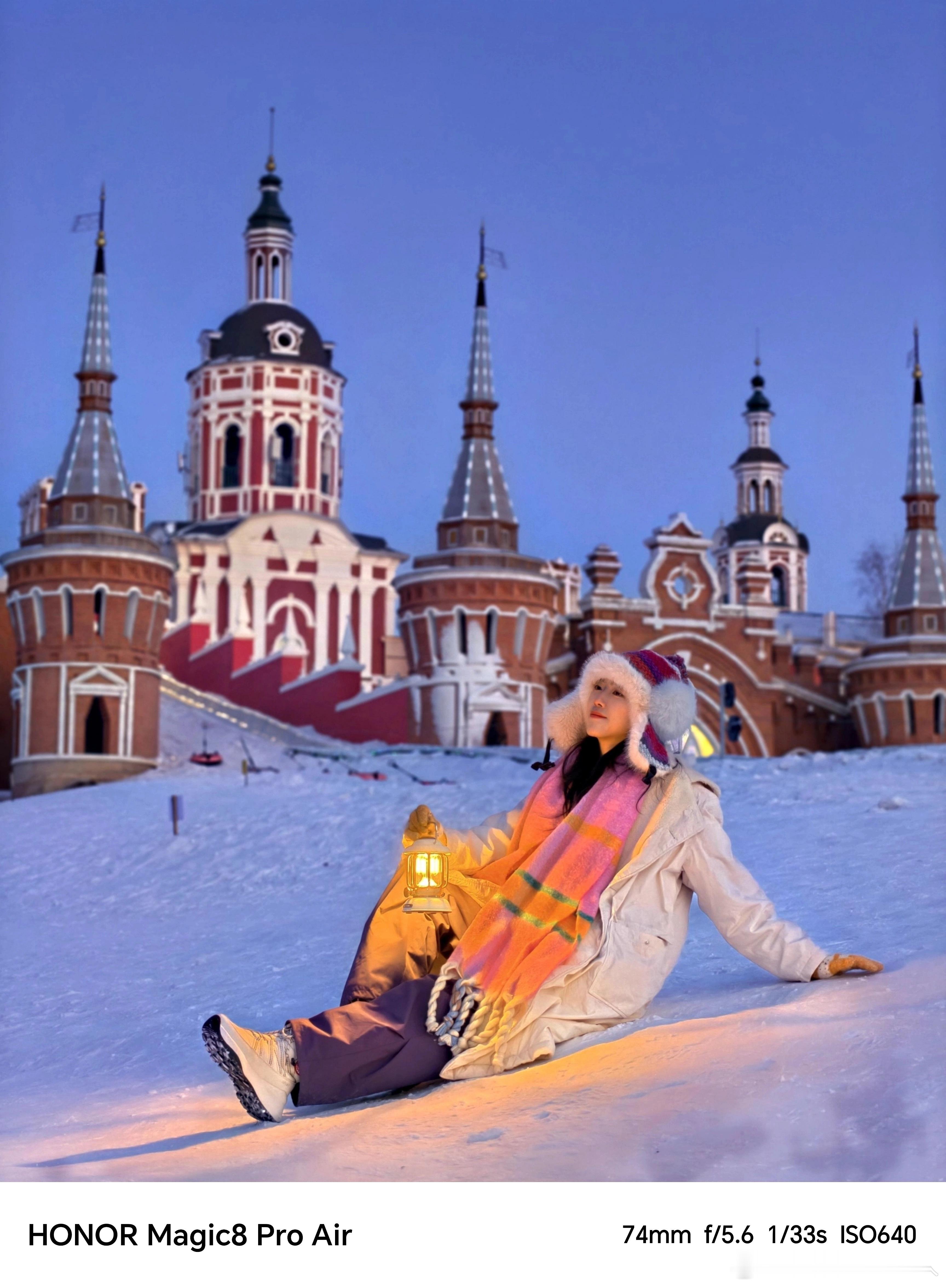 真的太有氛围感了!没想到荣耀Air影像真的这么强,每一张呈现都出乎意料,人像美丽冻人,景色清晰可见,看的我也好想去哈尔滨转转~冬日雪景闪光人像哈尔滨今年也太出片了