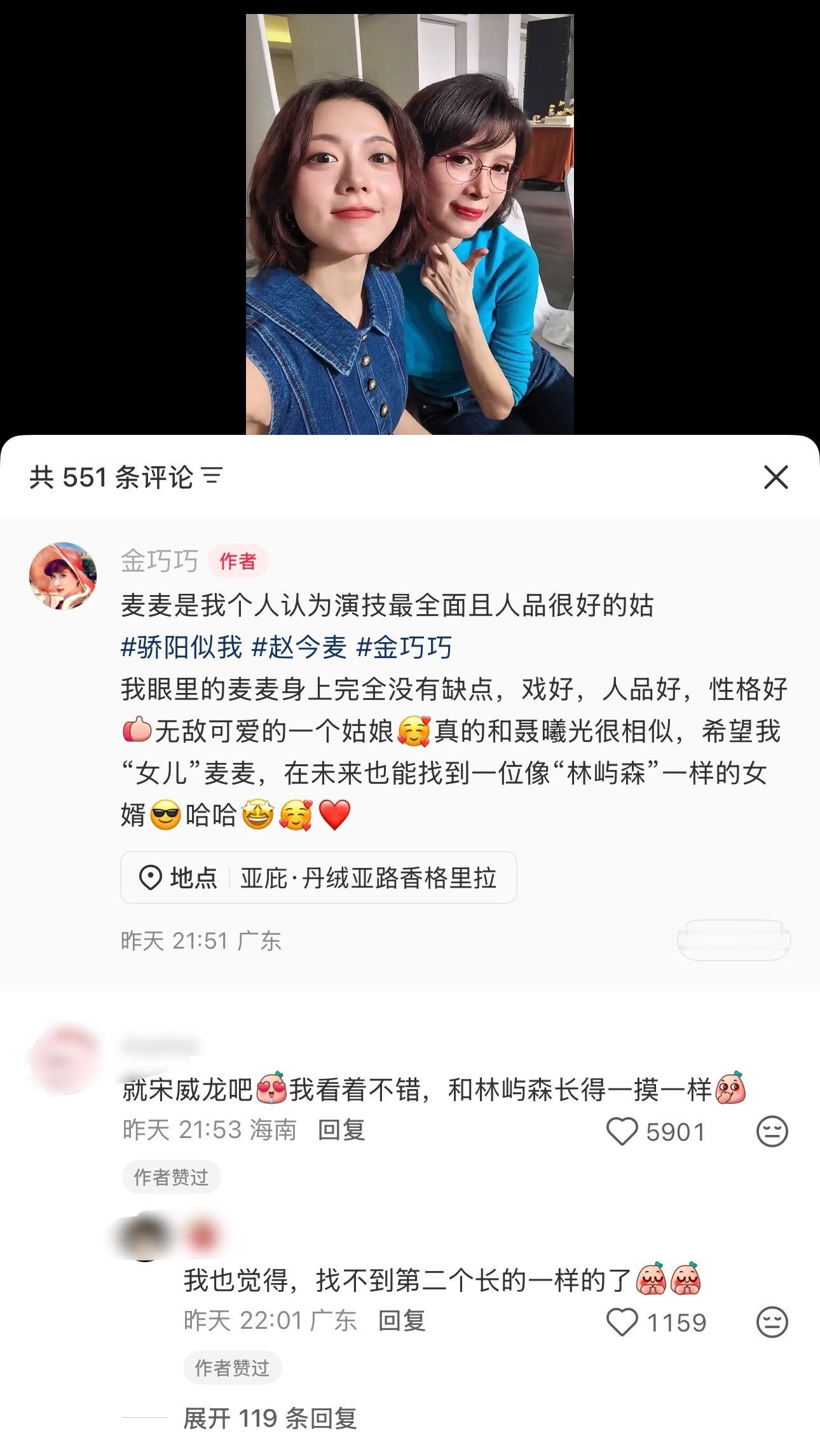 金巧巧说赵今麦演技全面人品好“就宋威龙吧,我看着不错,和林屿森长得一摸一样”“作者赞过”啊啊啊啊啊啊啊啊啊还是老艺术家敢点赞哈哈哈哈