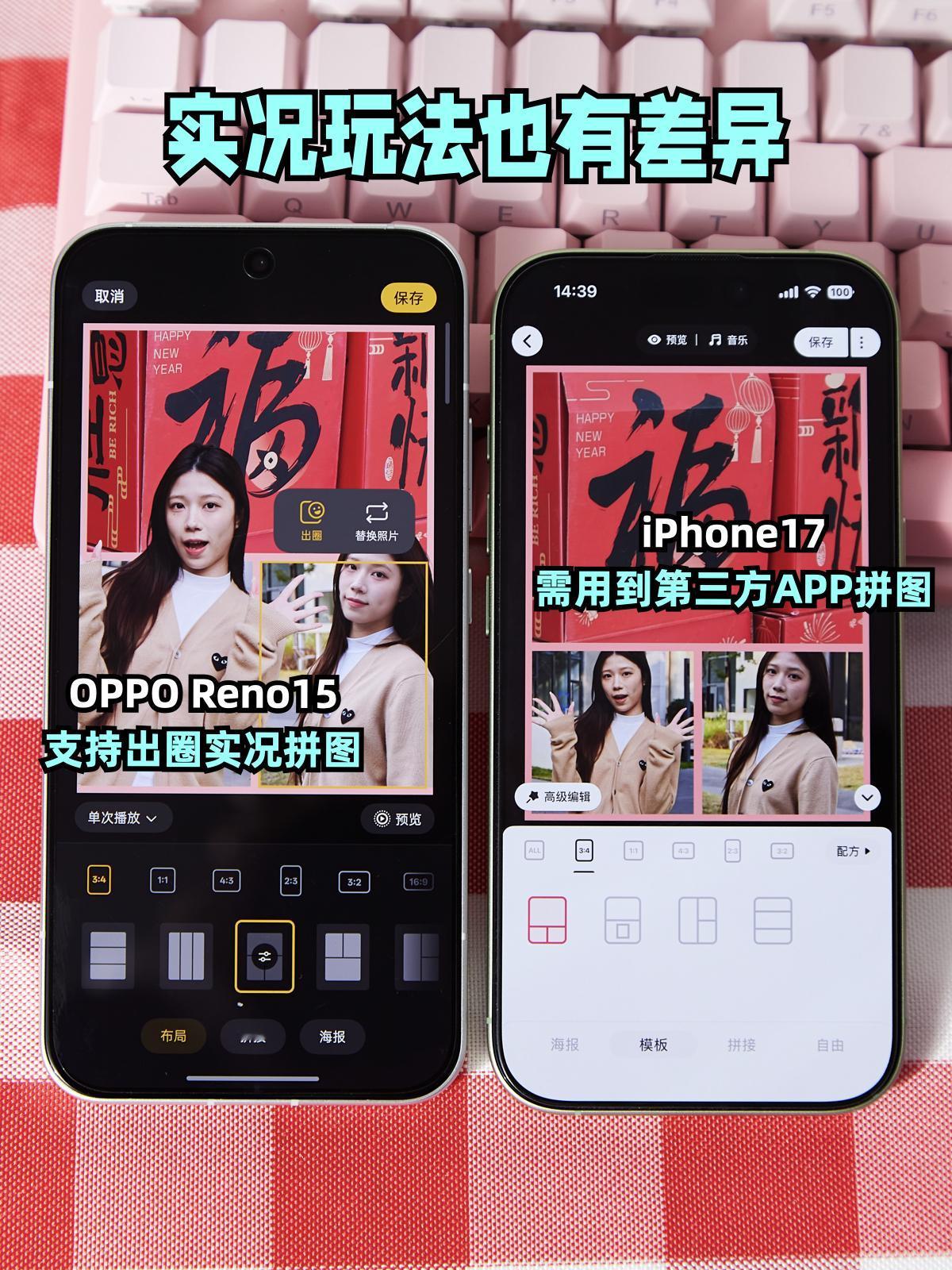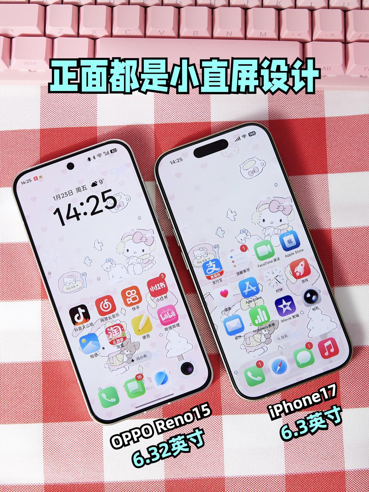 差价三千,这两款小直屏怎么选? 还有一个月就过年了,有没有准备换手机的? 作为颜控+拍照狂魔,喜欢轻薄小直屏 我还是觉得OPPO Reno15和iPhone17都不错 但对于犹豫国产和苹果的人来说,他两有啥区别呢? -- 我做了N多功课,汇总了一波~ 两款都是标准版小直屏,手感都很好 单手操作无压力,放小包包也不占地儿 颜值都很戳我,喜欢Reno15的星光蝴蝶结🎀 iPhone17的轻薄机身也很耐看 关键俩都卖得超火,Reno15据说52天就卖了100万部🔥苹果就更不用说了 -- 🌟重点说两者区别!差价足足三千+,差异也很直观👇 -- ✅Reno15 影像配置比较硬核,2亿主摄+5000万潜望长焦+5000万超广角,没有一个拉胯的镜头。 而且实况玩法多到上瘾,出圈实况拼图可以一键出3d效果的live, 还有ccd闪光实况、前后实况同拍,都很实用,适合我这种爱拍照的。 🔋6200mAh大电池+80W闪充,续航强很多,用一天完全够了,加上ColorOS16的AI功能超实用,闪记取餐码、实景对话还有AI写作~ -- ✅iPhone17 A19芯片+iOS26,性能流畅度都没话说,用过三四年完全不成问题,起步储存也涨到256g了,这代标准版还是很香的。 就是手机只有双摄,充电有进步但不算快还得额外买快充头...而且💰价格真的贵出一台安卓😓 -- 结论就是,两千多的Reno15完全不输旗舰体验,拍照、续航、AI功能反而更戳日常需求,年货节冲它性价比拉满,学生党和打工人闭眼入不亏~ 预算到位的话,苹果17其实也还不错 -- 🤔说实话,这样一对比,感觉两千多的国产Reno15验根本不输苹果,甚至拍照可玩性还更高! -- ⚠️至于怎么选就看自己的需求和预算了,毕竟丰俭由人 -- 新年新手机iPhone17OPPO Reno15