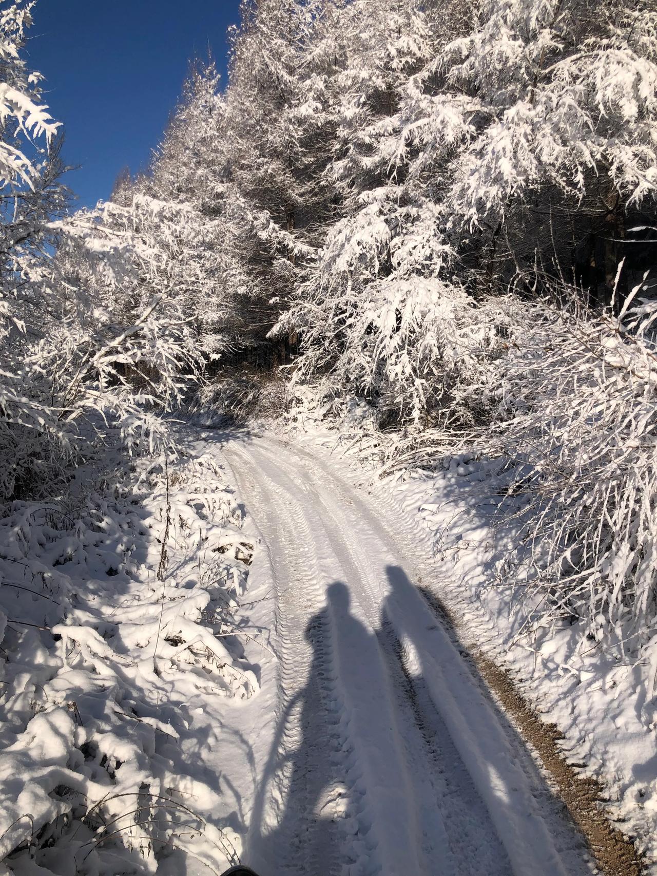 美景啊!雪后大地都洁白了,天空湛蓝,树木银装素裹,太阳明媚,云朵生动活泼,放空自己感受自然,心情绝佳